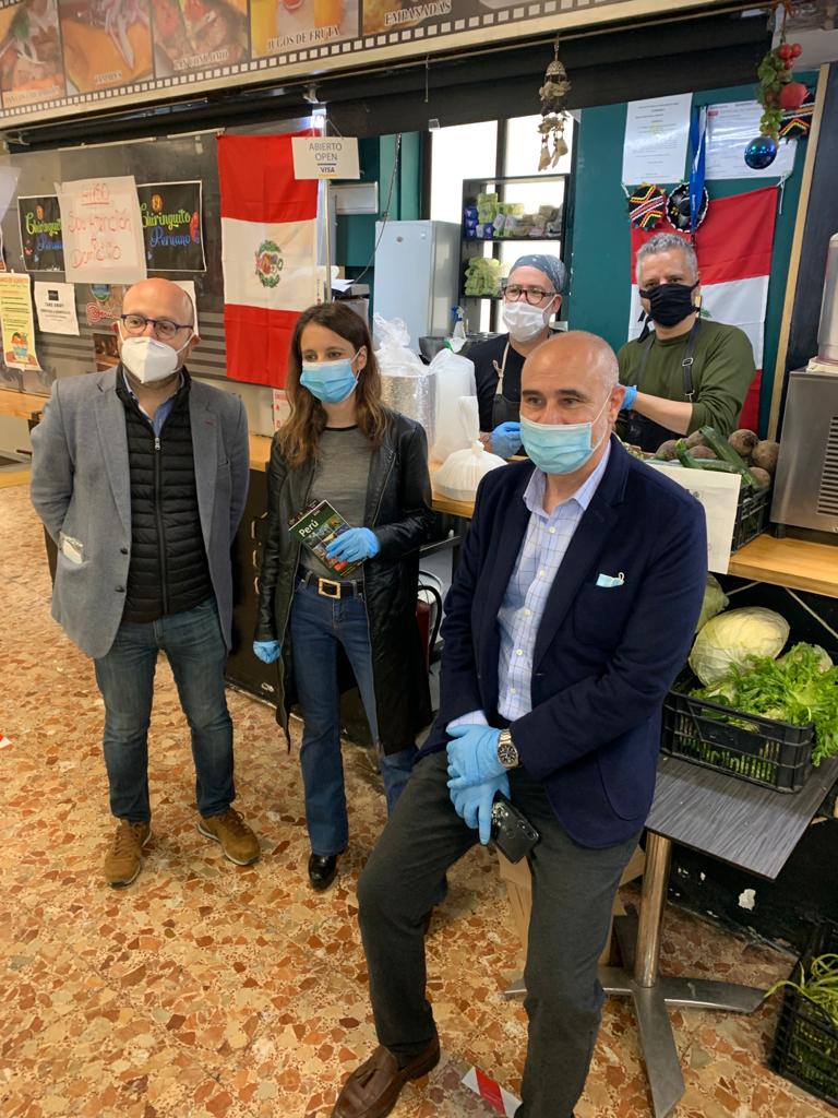 Durante el recorrido, ambos han conversado con los trabajadores que intentan recuperar la normalidad en este lugar de encuentro del barrio y han visitado los restaurantes El chiringuito peruano y el bar de Conchi, donde actualmente se dan comidas solidarias y otras a un precio reducido de tres euros, para que las personas que están atravesando momentos económicos difíciles puedan acceder a un menú completo.