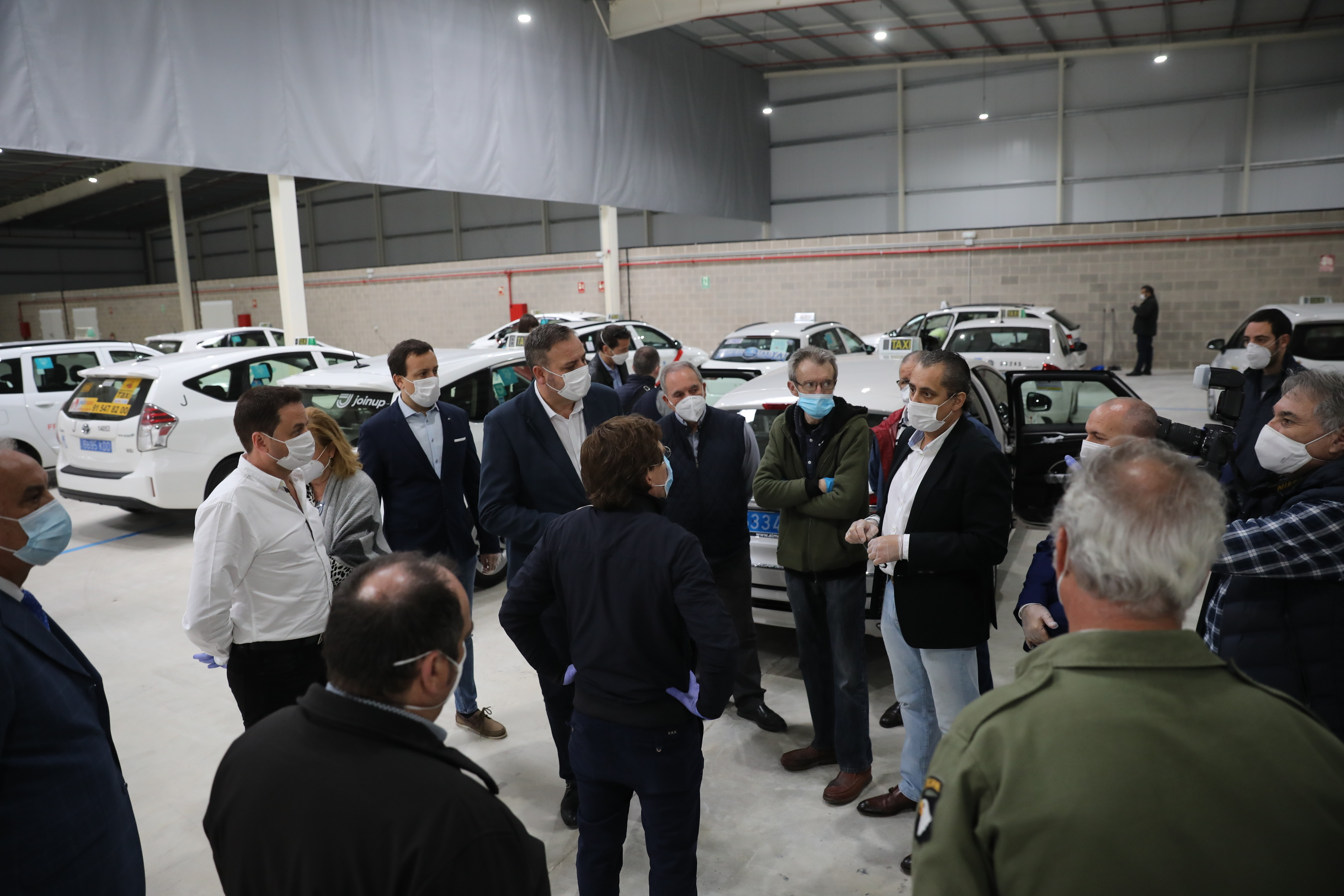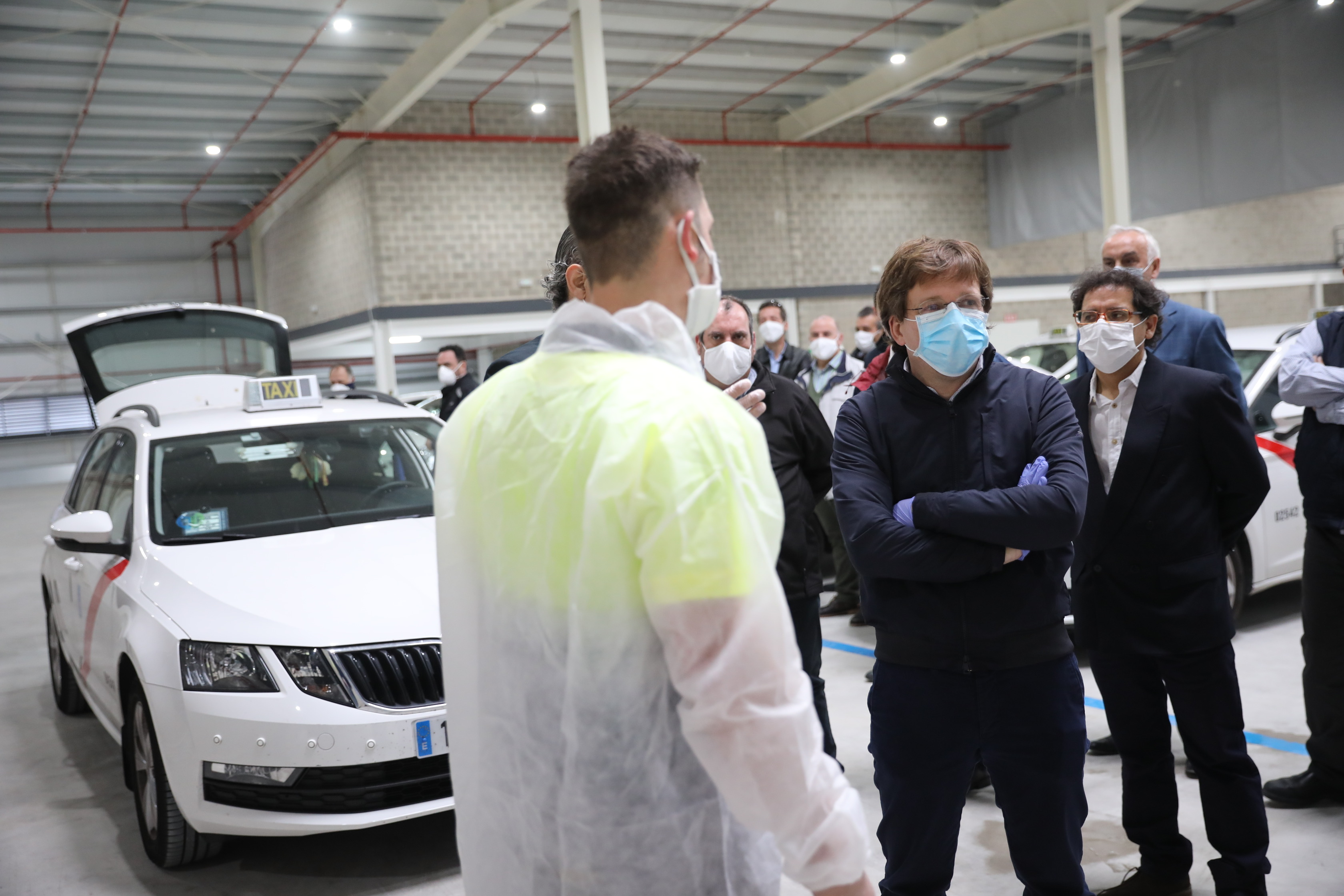 El Ayuntamiento de Madrid cede desde hoy una nave municipal a la Asociación Gremial de Auto-Taxi de Madrid para que pueda desinfectar los vehículos del sector y garantizar así la seguridad sanitaria de sus profesionales y de los usuarios que utilicen este medio de transporte durante la crisis de la COVID-19. Unas instalaciones que han visitado esta mañana el alcalde de Madrid, José Luis Martínez-Almeida, el delegado de Medio Ambiente y Movilidad, Borja Carabante, y la delegada de Obras y Equipamientos, Paloma García Romero.