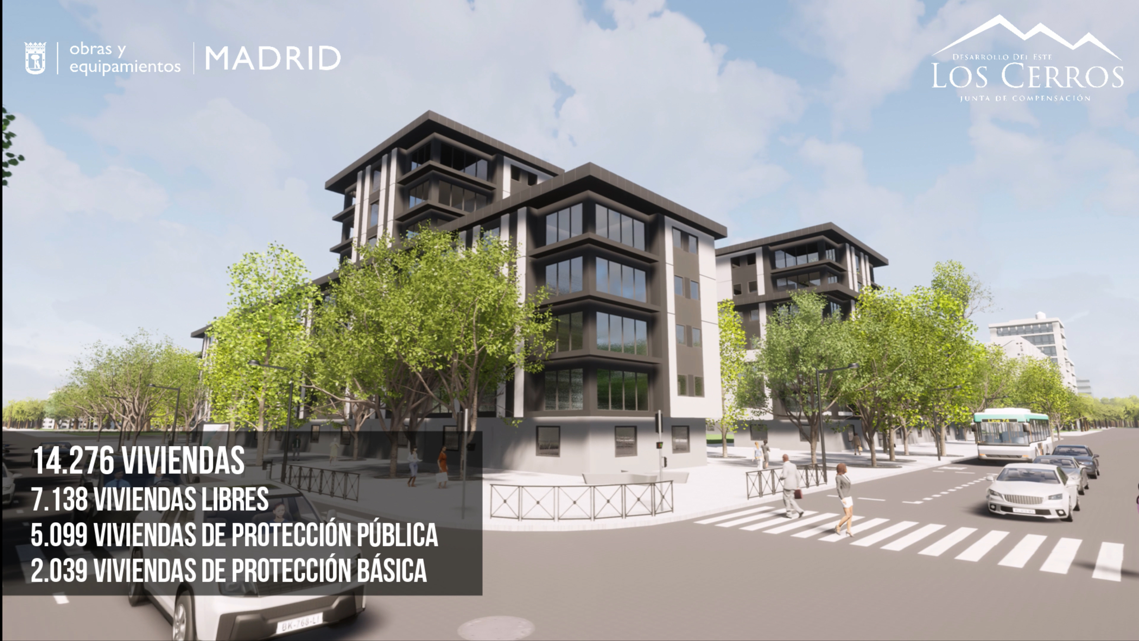 El ámbito de Los Cerros, situado entre El Cañaveral y San Fernando de Henares, tiene una superficie total de 4,7 millones de metros cuadrados y se estima que en él se construirán más de 14.000 viviendas, de las que la mitad contarán con algún tipo de protección. De esta manera, junto al resto de los desarrollos del sureste (El Cañaveral, Los Berrocales, Los Ahijones y Valdecarros), este ámbito contribuirá a ofrecer a los madrileños vivienda a un precio asequible.