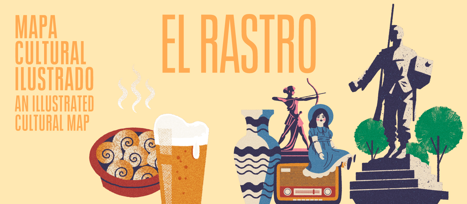 “El Rastro es algo más que un mercado de pulgas. El Rastro es una filosofía, una manera de ser y de estar en el mundo que trasciende las modas y el paso del tiempo”. Así lo define Ignacio Vleming en Un mapa del Tesoro, el texto de apertura de la guía visual ilustrada por Daniel Diosdado disponible en los centros gestionados por Madrid Destino, puntos turísticos y otras instalaciones municipales.
