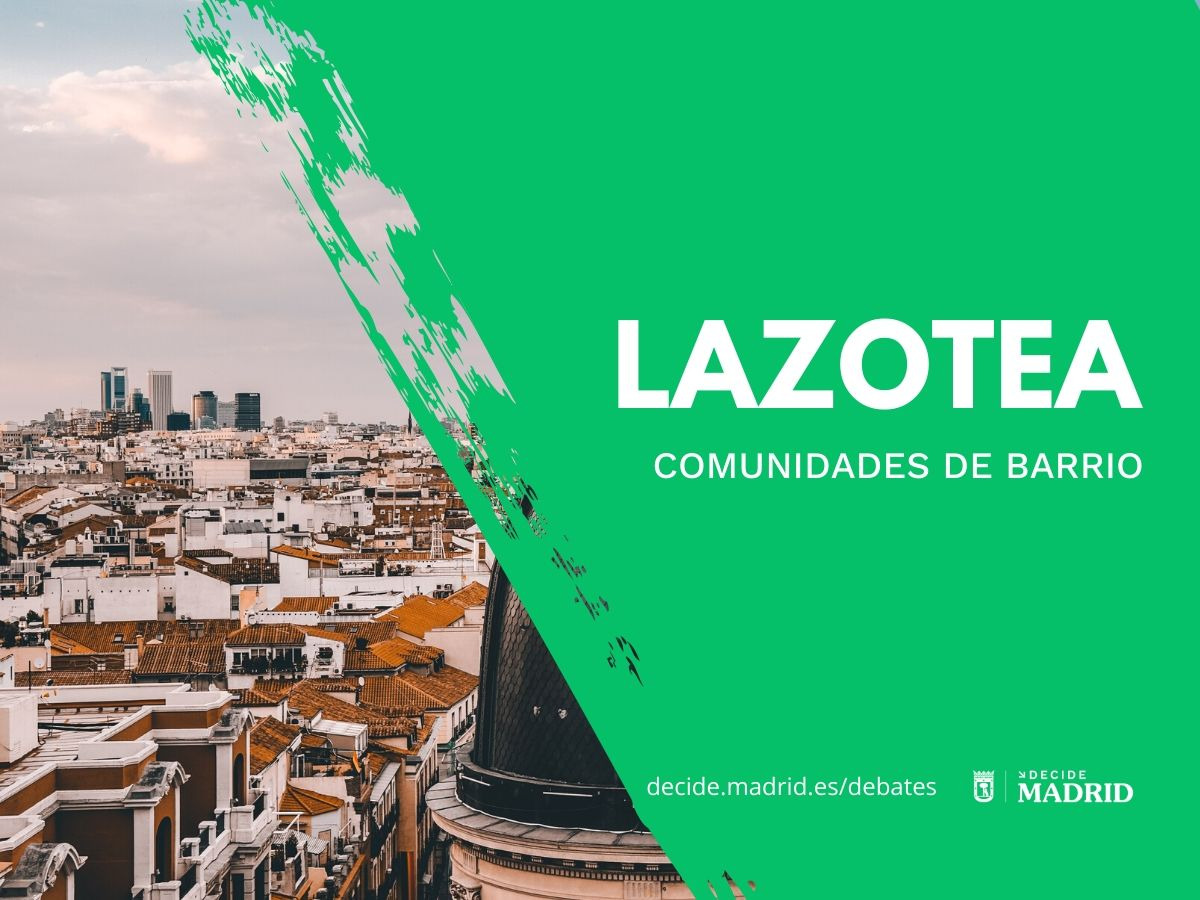 El portal de participación ciudadana del Ayuntamiento, DecideMadrid, incluye desde hoy la sección LAZOTEA, un lugar virtual para que los vecinos de los 131 barrios que conforman la ciudad puedan comunicarse entre sí y con otros vecinos de su misma zona. Este espacio, que nace con vocación de compañía, permitirá que los madrileños de un barrio puedan compartir e intercambiar opiniones con otros vecinos sobre los temas que más les preocupen, proponer ideas de mejora, facilitar ayuda o proponer nuevos debates en este foro.