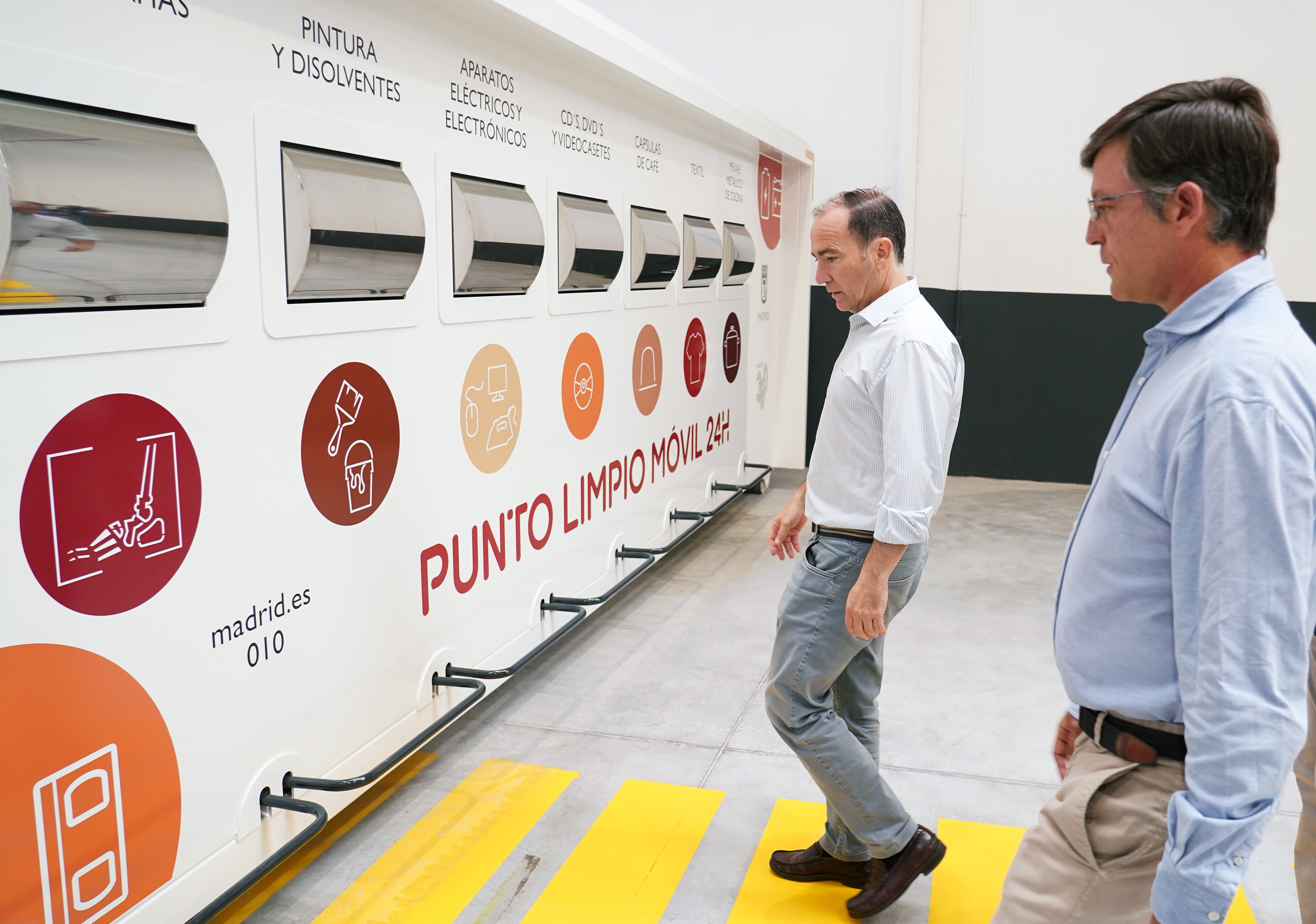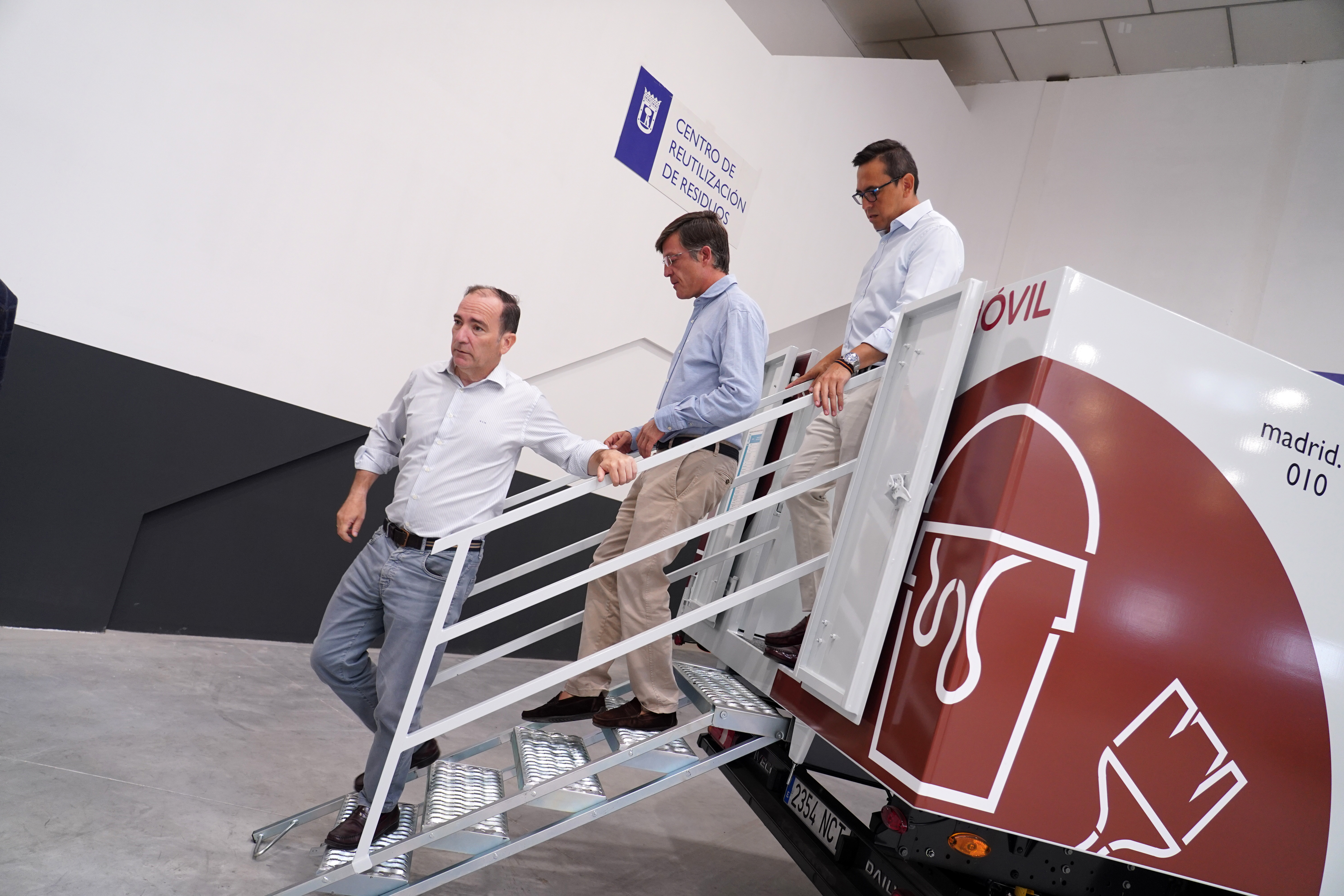 Con motivo de la puesta en marcha de esta nueva prestación, el delegado del Área de Gobierno de Urbanismo, Medio Ambiente y Movilidad, Borja Carabante, acompañado del concejal delegado de Limpieza y zonas Verdes, José Antonio Martínez Páramo, y el concejal de Villaverde, Orlando Chacón, ha visitado las instalaciones de uno de los Centros de Reutilización de Residuos que ya se encuentra operativo: el ubicado en el Polígono Industrial de Villaverde, situado en la calle de San Norberto, 44.