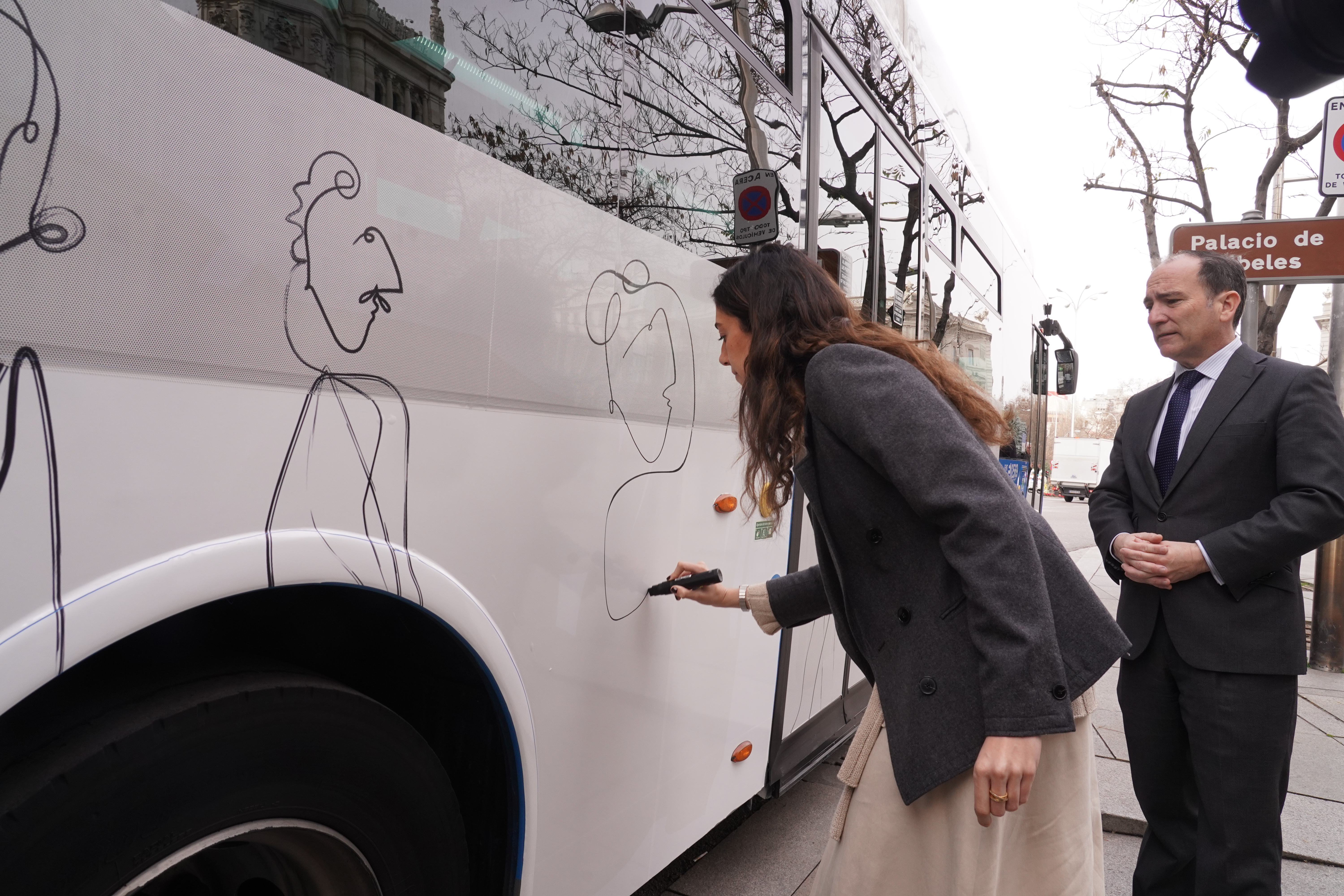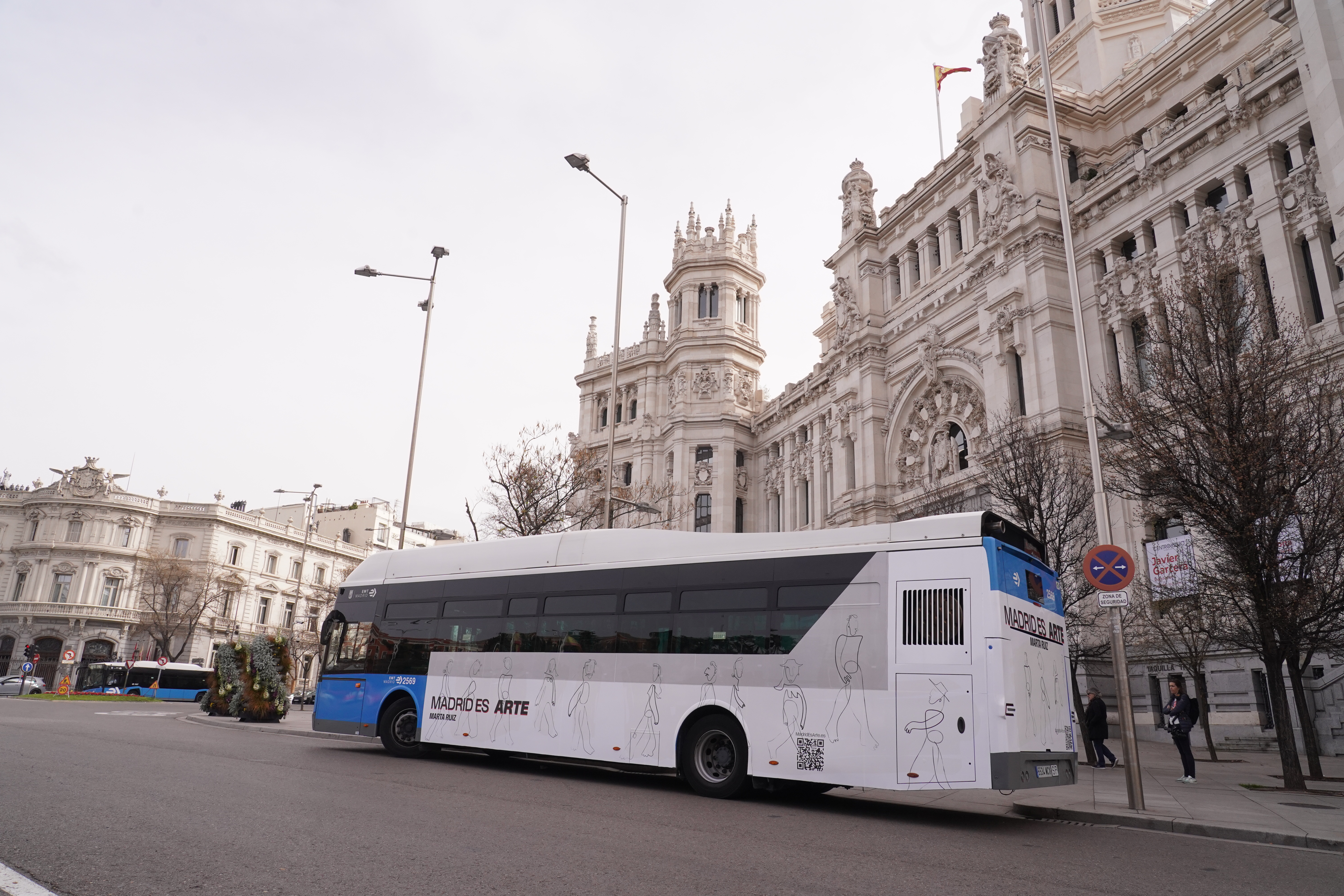 Hasta el próximo 15 de marzo, en cinco líneas de autobuses de EMT Madrid, madrileños y visitantes podrán contemplar de cerca las obras de cinco artistas que residen y trabajan en la capital: Marta Ruiz, Cristina Iturrioz, Claudia Alonso-Allende, Jaime Monge y Anna Barrachina. Durante el acto de presentación, Marta Ruiz, exponente del uso del trazo continuo, ha tenido ocasión de terminar su creación artística in situ sobre el lateral del autobús que recorrerá las calles de la ciudad.