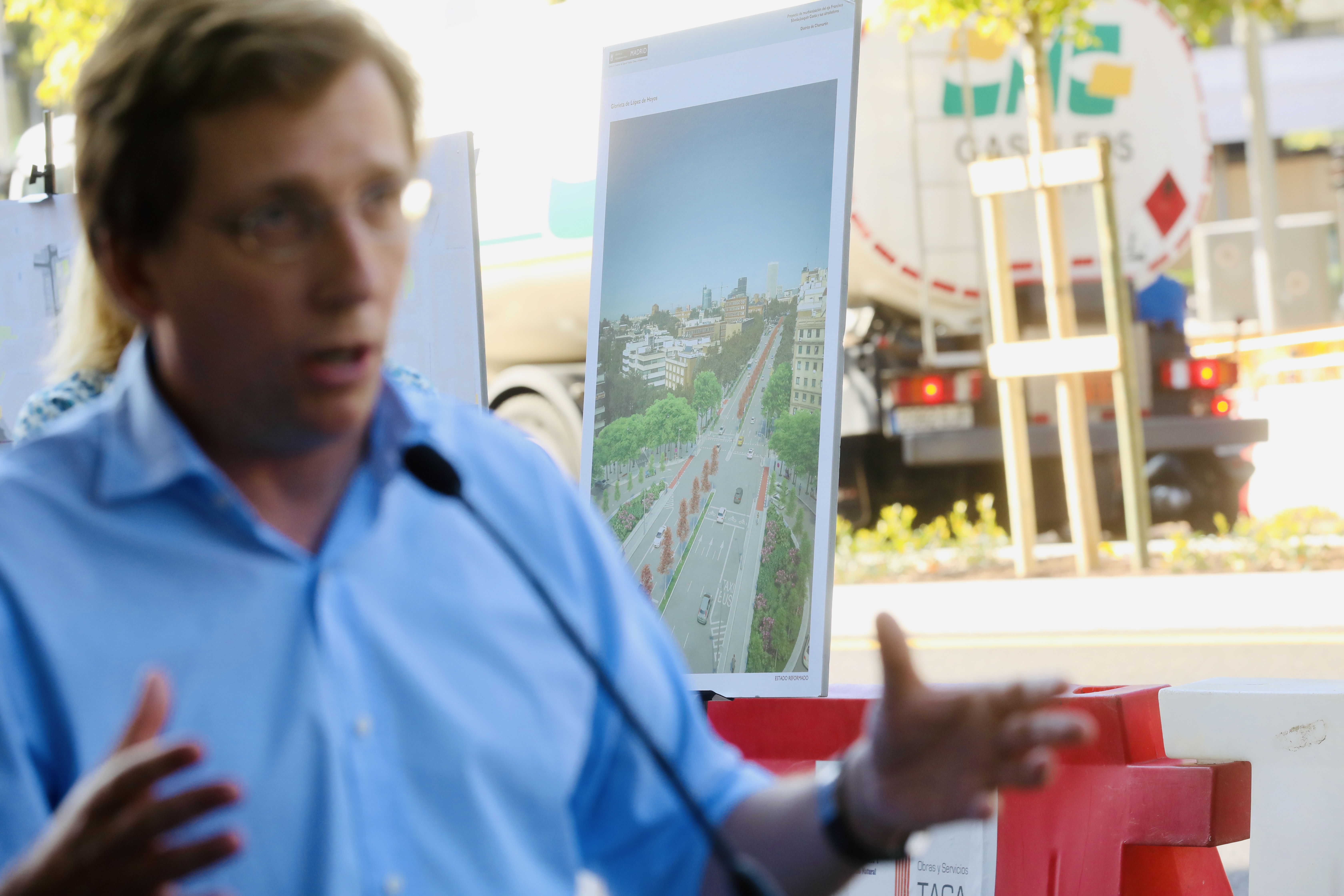 Durante la primera fase de los trabajos, que están siendo ejecutadas por el Área de Obras y Equipamientos, se ha terminado la mediana central del eje, las dos isletas de la glorieta de López de Hoyos y la mediana central de Príncipe de Vergara, además de los cruces transversales de instalaciones. Asimismo, se han colocado los nuevos semáforos, sus reguladores, el arbolado y jardinería de la mediana y su riego.