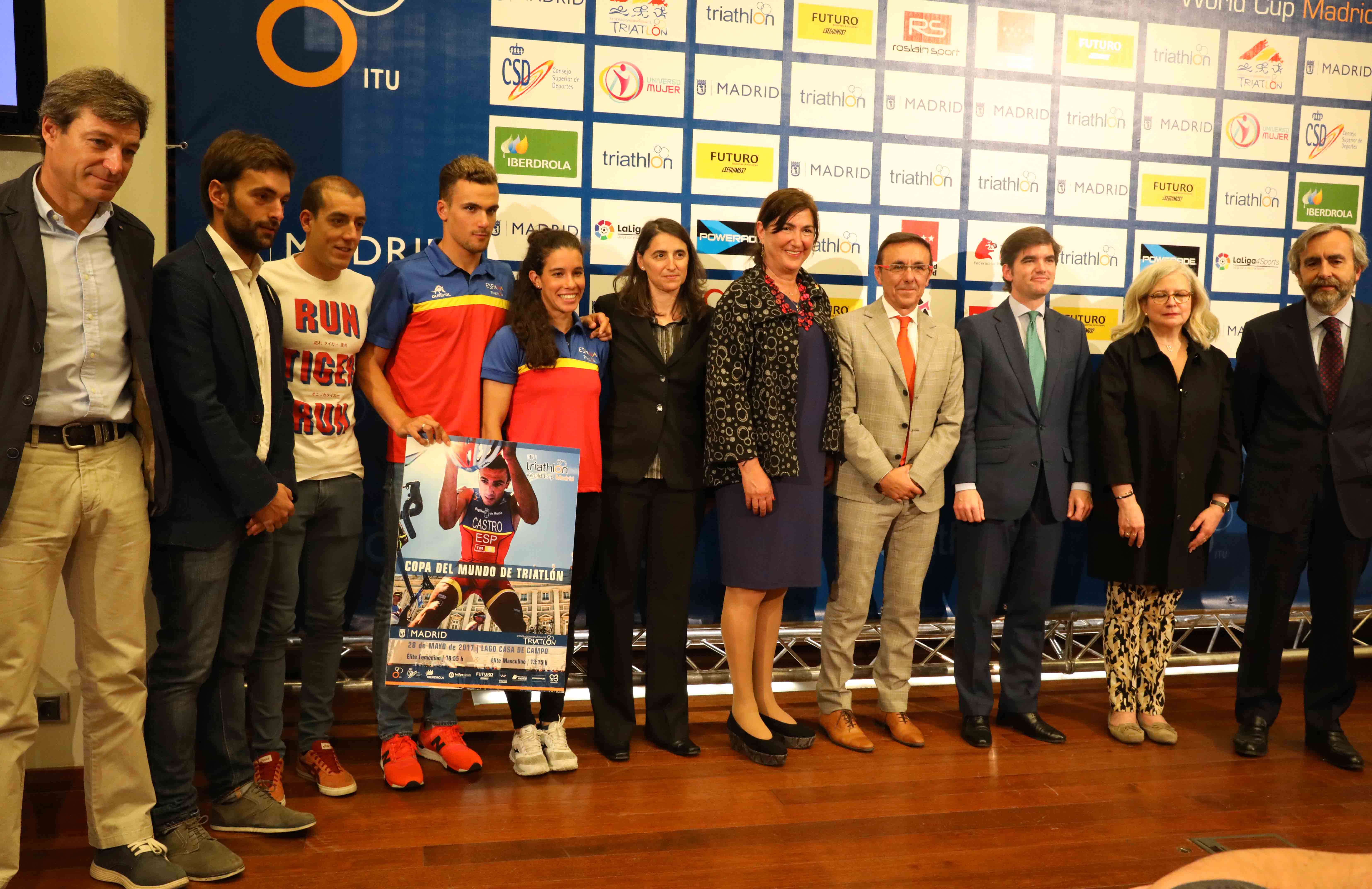 La decimocuarta edición de la Copa del Mundo de Triatlón se ha presentado hoy jueves, 18 de mayo, en el Ayuntamiento de Madrid, en un acto presidido por la coordinadora general de Cultura, Deporte y Turismo, María del Carmen Rojas, y en que también han participado José Hidalgo Martín, Presidente de la Federación Española de Triatlón y los deportistas olímpicos Míriam Casillas, Fernando Alarza y el doble campeón de Europa de Triatlón sub 23, David Castro, entre otras personalidades.