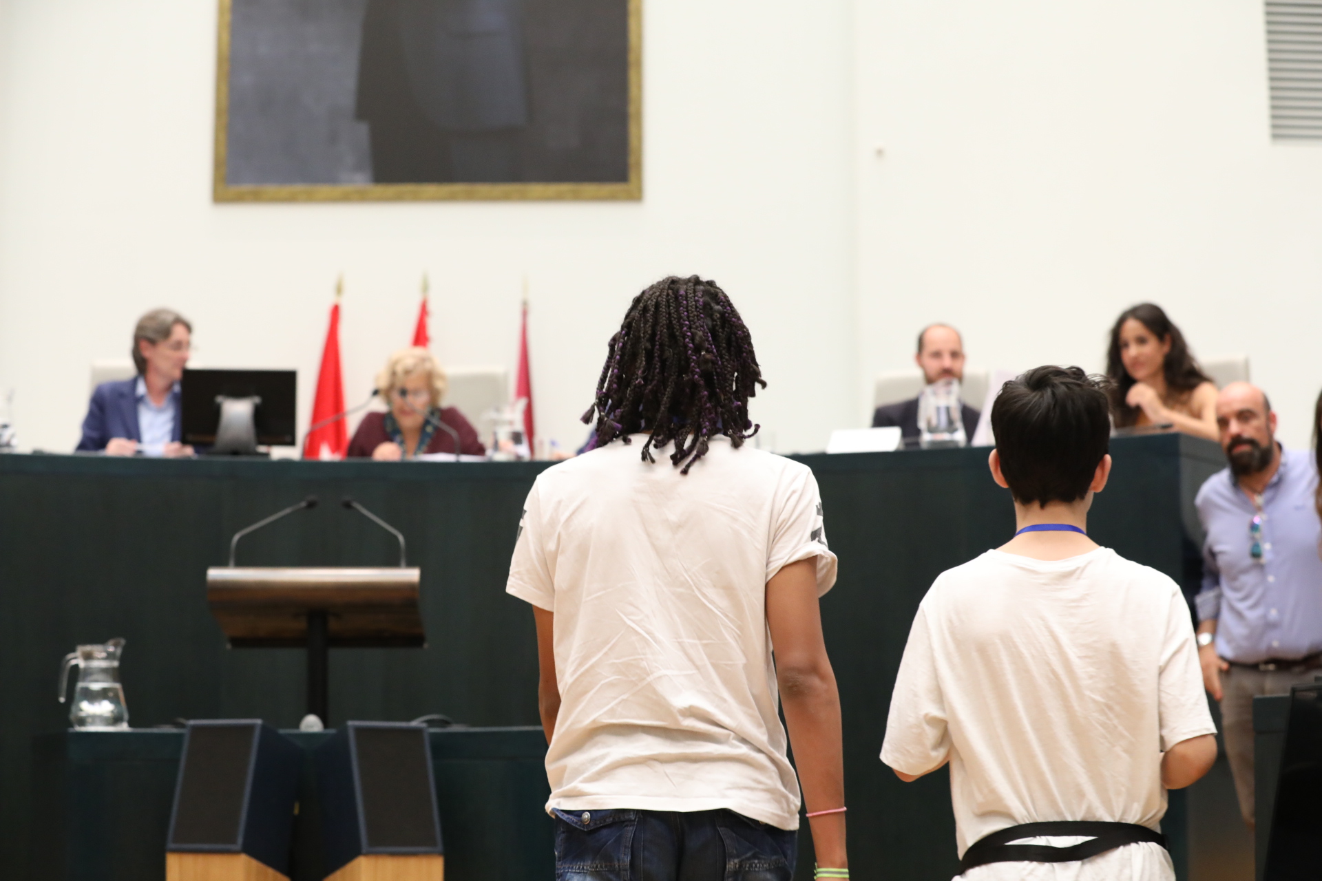 El acoso escolar, la movilidad, el medio ambiente o la igualdad de género son algunos de los temas que preocupan a los 69 jóvenes de entre 13 y 17 años de edad que en la tarde de este martes han ocupado los sillones de los concejales y concejalas del Ayuntamiento de Madrid, en el pleno adolescente: ‘Madrid adolescente se pone al frente’. La alcaldesa, Manuela Carmena, que ha presidido la sesión plenaria, se ha comprometido a celebrar este pleno cada dos meses, como le han reclamado los participantes, a quienes ha felicitado: “Habéis cumplido el objetivo y habéis demostrado que tenéis muchas cosas que decir”.