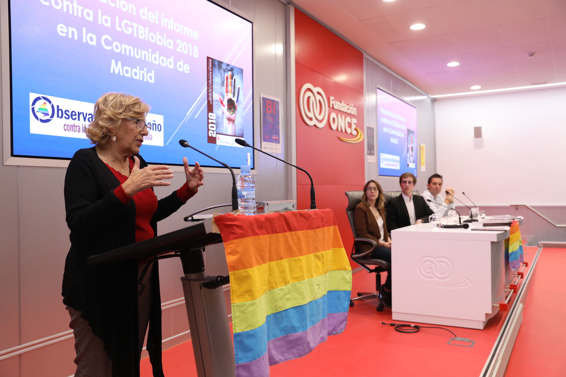 La alcaldesa ha declarado que: “Todas las instituciones debemos hacer planes contra la violencia y por supuesto en el marco de esos planes, contra los colectivos en los que la violencia se centra y envenena”. Ha continuado diciendo que “un discurso que a todos nos unía y que pensábamos que no había nadie que iba a cuestionarlo, se está cuestionando, pero yo estoy llena de optimismo porque creo que no va a vencer ese cuestionamiento, es más, yo diría que nos va a valer para tener más fuerza y más seguridad de cómo lo tenemos que defender”. Ha finalizado con un “sabéis que contáis con el Ayuntamiento de Madrid”, dirigiéndose a los miembros del Observatorio.