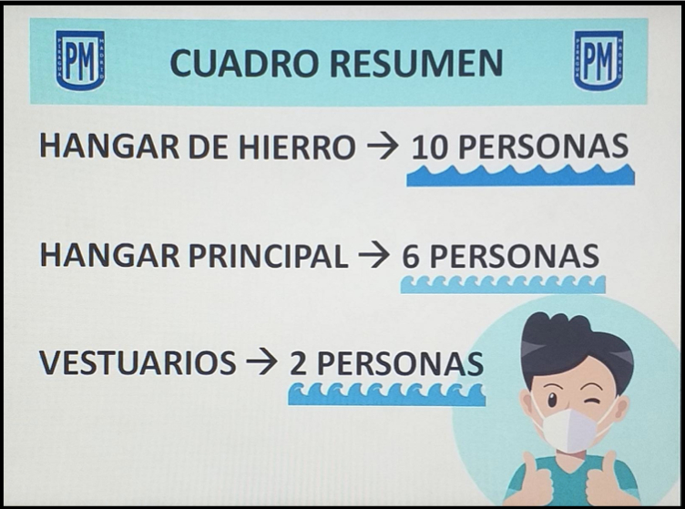 El aforo será como máximo del 50 % y se permitirá la presencia de un técnico en los entrenamientos, que podrán ser grupales con una distancia entre personas de, al menos, tres metros en aquellas modalidades en las que se requiera (K2, C2, K4 Y Kayak Polo).
