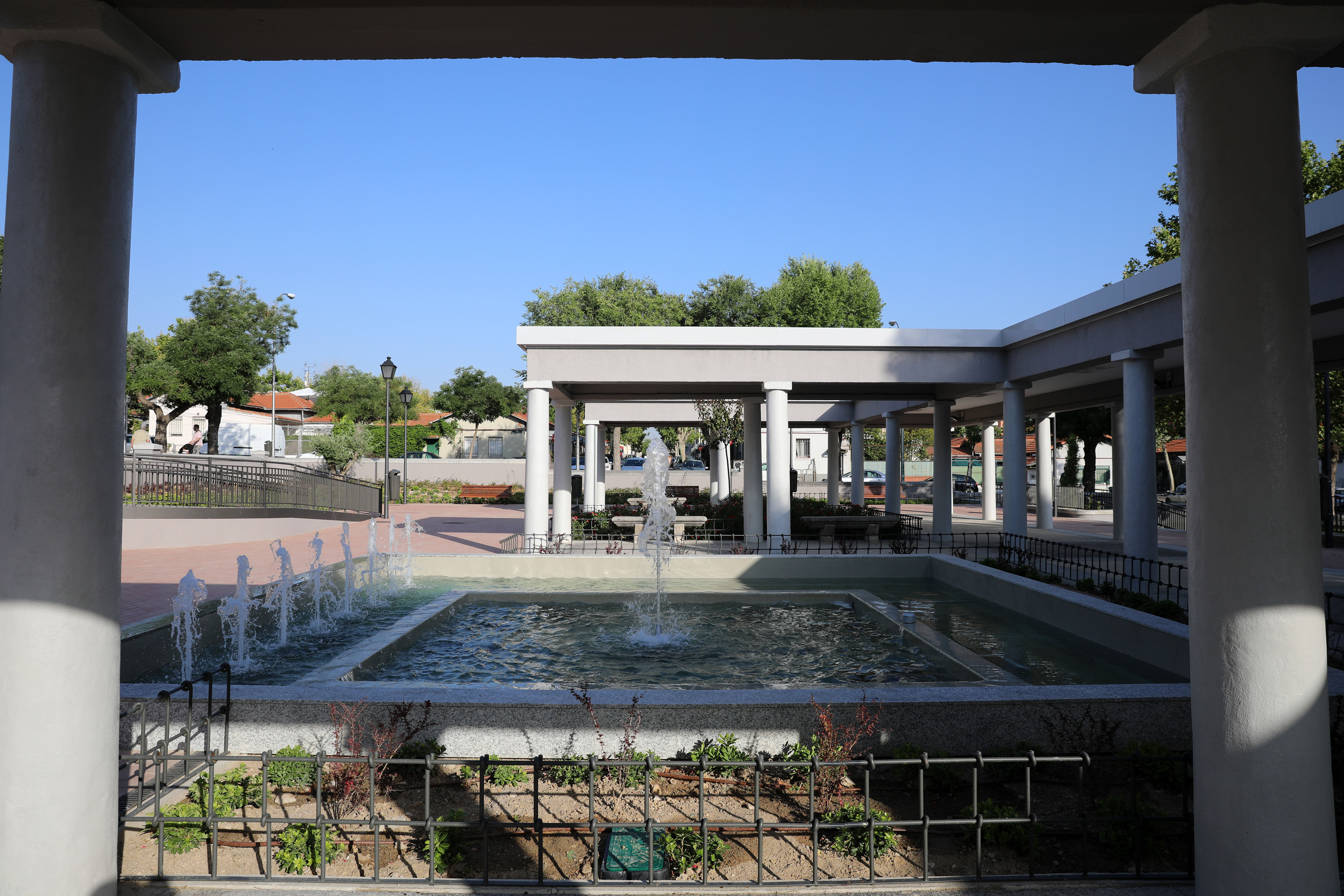 Este espacio, enclavado en una zona de viviendas adosadas, apenas era utilizado por el vecindario puesto que carecía de pasos accesibles, zonas de sombras, bancos, papeleras o pasos para peatones, entre otros. Con la remodelación, se ha pavimentado la plaza y se ha estructurado en dos plataformas a distintos niveles; se han dispuesto diversas zonas ajardinadas a lo largo del perímetro y se ha restaurado la pérgola existente, mejorando su impermeabilización. Además se ha instalado mobiliario urbano en toda la zona y se ha construido una amplia zona de juegos infantiles.