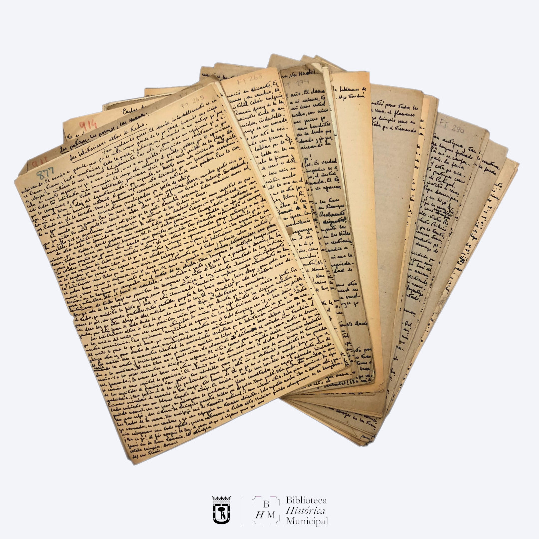 - Capítulos manuscritos y correcciones de algunos de sus libros como Historia de una taberna o La fábula de Domingo Ortega.