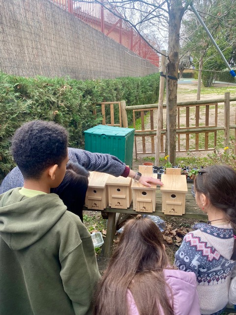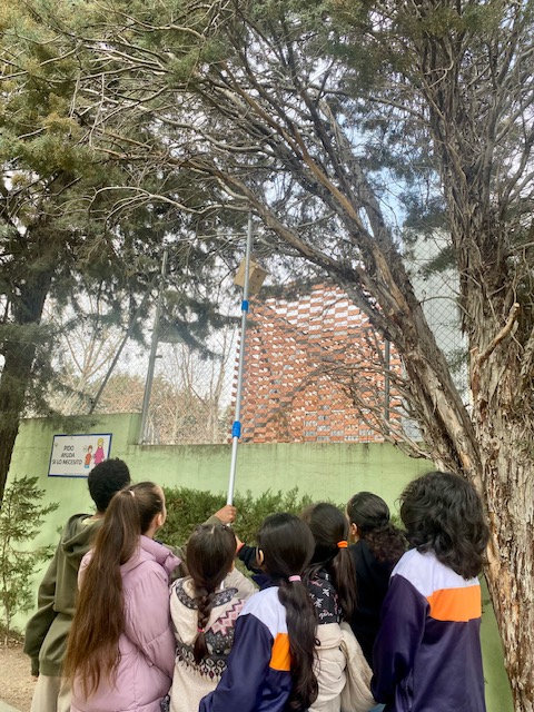El alumnado del comité ha participado en la colocación de 5 casas nido en el huerto y árboles del patio infantil, junto con los voluntarios Félix Arribas y Rafael, conserje de nuestro colegio, que pertenecen al grupo local Vanellus de SEO Birdlife, sobre protección de biodiversidad y aves. Nos organizamos para instalarlo el 20 de febero y ha sido una jornada muy divertida e interesante. Esperamos con ilusión la visita de nuestros queridos pájaros urbanos.