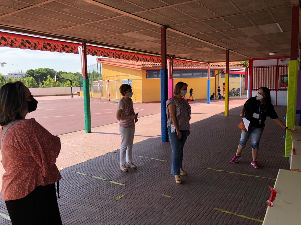 La concejala del distrito de Usera, Loreto Sordo, ha visitado esta mañana el campamento urbano que alberga el colegio público Nuestra Señora de la Fuencisla en el distrito. Una actividad desarrollada para promover la conciliación familiar y laboral, en la que la Junta Municipal de Usera ha trabajado intensamente para cumplir con los plazos previstos, a pesar de las dificultades en los procedimientos que ha conllevado la crisis sanitaria de la COVID-19.