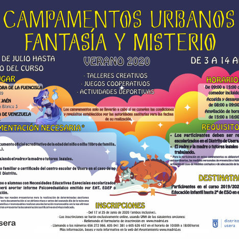 Van dirigidos a niños de 3 a 14 años que residan en Usera o estén escolarizados en el distrito durante el curso 2019/20 en el 2º ciclo de Educación Infantil, Educación Primaria o 1º y 2º de ESO.
