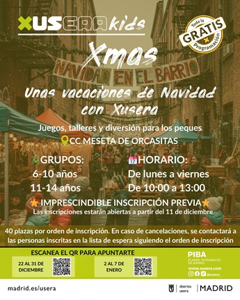 Las actividades de Navidad están dirigidas a niños y niñas de entre 6 y 14 años, residentes en el Distrito de Usera.