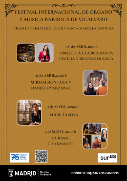 El Festival Internacional de Órgano y Música Barroca del Distrito de Vicálvaro celebra su Ciclo de Primavera con una programación de cinco conciertos dedicados al gran repertorio barroco y a la música para órgano, interpretados por reconocidos músicos y formaciones de prestigio nacional e internacional.