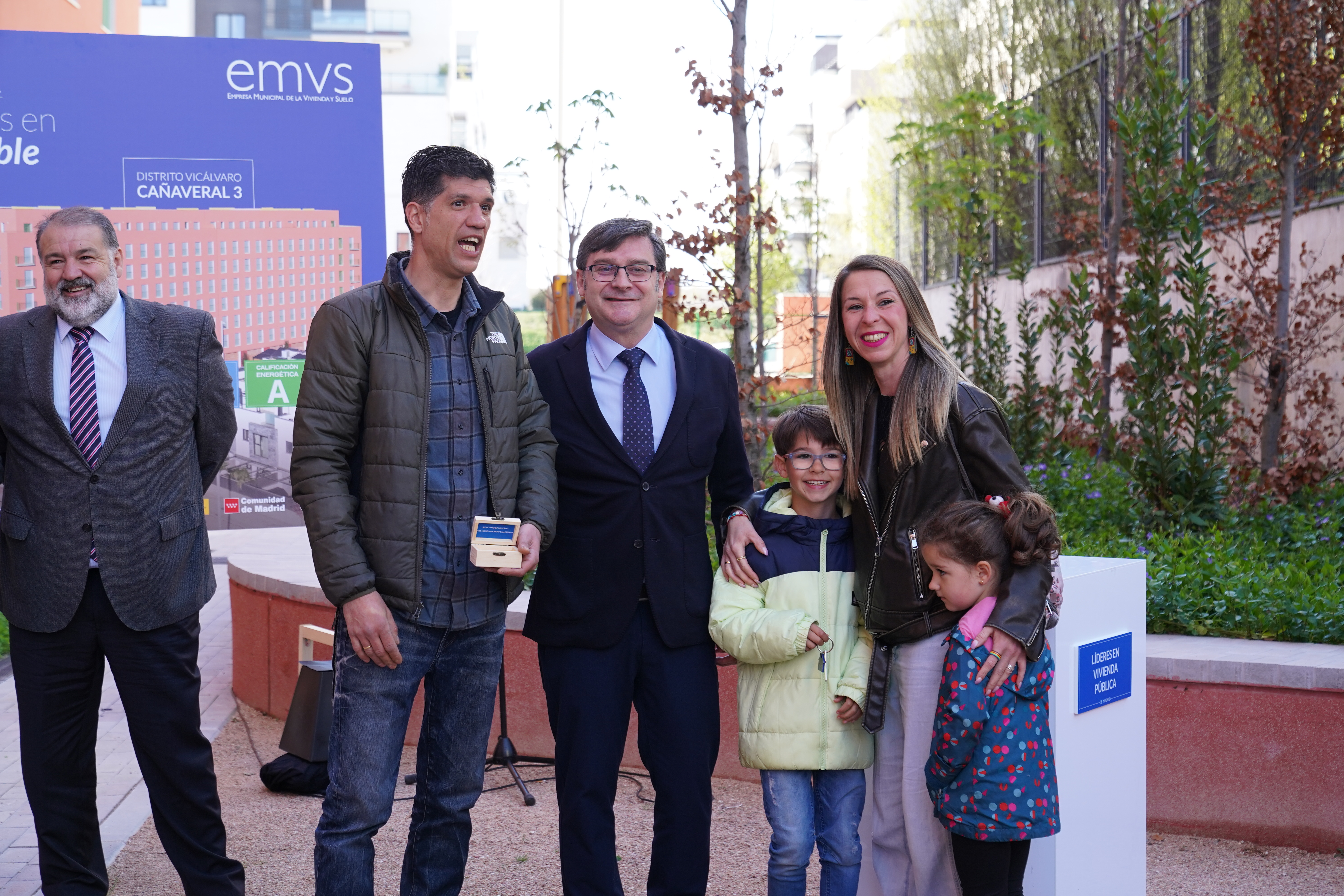 Las familias que habitarán la promoción Cañaveral 3 han recibido este miércoles las llaves de sus nuevas viviendas de alquiler asequible. El delegado de Políticas de Vivienda y presidente de la Empresa Municipal de la Vivienda y Suelo de Madrid (EMVS Madrid), Álvaro González, acompañado del concejal de Vicálvaro, Ángel Ramos, ha recibido a los primeros adjudicatarios de esta nueva promoción pública en Vicálvaro y ha visitado, junto a algunas de estas familias, sus nuevos hogares.