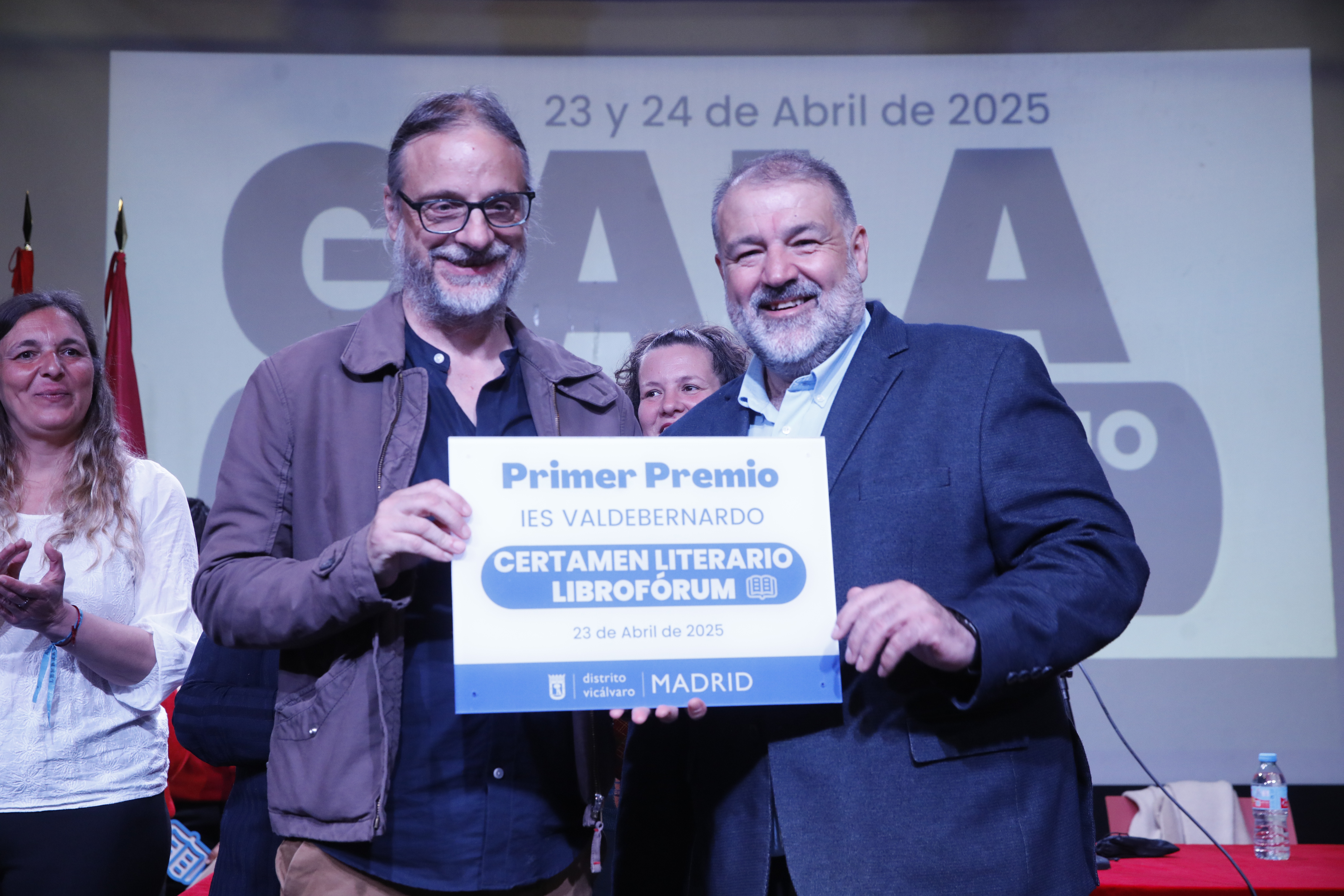 El concejal de Vicálvaro, Ángel Ramos, ha entregado hoy los premios en la categoría de Secundaria, “un certamen que organizamos para fomentar la escritura, la creatividad literaria y narrativa de los alumnos del distrito”. El primer premio ha recaído en Carlota Yagüe, de 2º de ESO del IES Valdebernardo. Seguido de Adrián Carrillo, de 4º de ESO del IES Valdebernardo y Emma Jiménez Díaz, de 1º de ESO del Colegio El Valle. La entrega de premios a los alumnos de la categoría de Primaria se celebrará mañana.