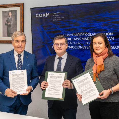 EMVS Madrid convoca dos concursos de proyectos de arquitectura de alquiler asequible en Los BerrocalesLa Empresa Municipal de la Vivienda y Suelo de Madrid (EMVS Madrid) va a convocar dos concursos de proyectos de arquitectura en dos promociones de vivienda pública en Los Berrocales. Así lo recoge el convenio de colaboración firmado hoy por el delegado de Políticas de Vivienda y presidente de EMVS Madrid, Álvaro González, y el decano del Colegio Oficial de Arquitectos de Madrid (COAM), Sigfrido Herráez.