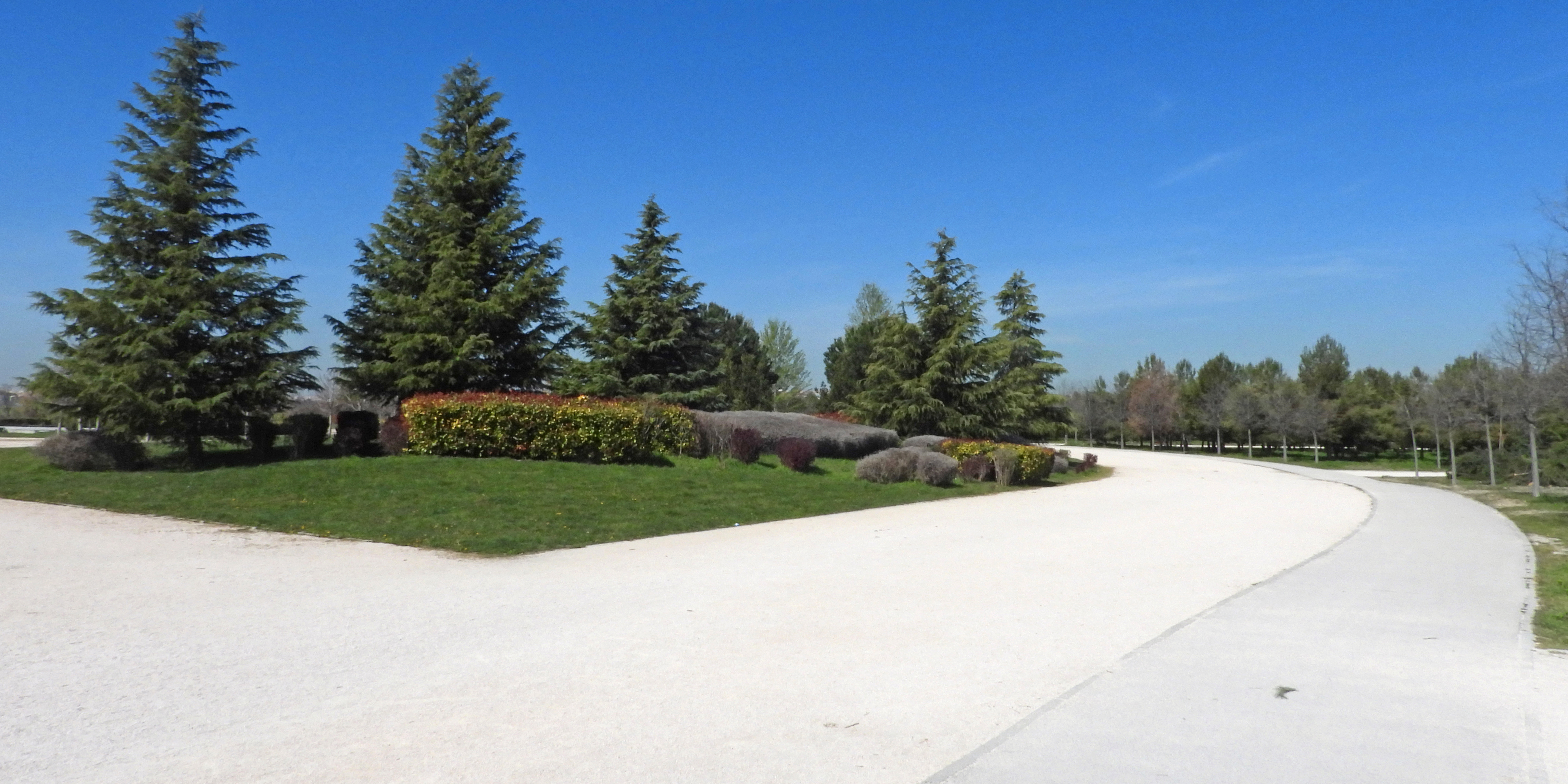 Eje Sur: en la zona sur, el parque se desarrolla a través de amplias zonas ajardinadas, céspedes, formaciones arbustivas y alineaciones de árboles, con un moderno sistema de riego que utiliza agua regenerada.