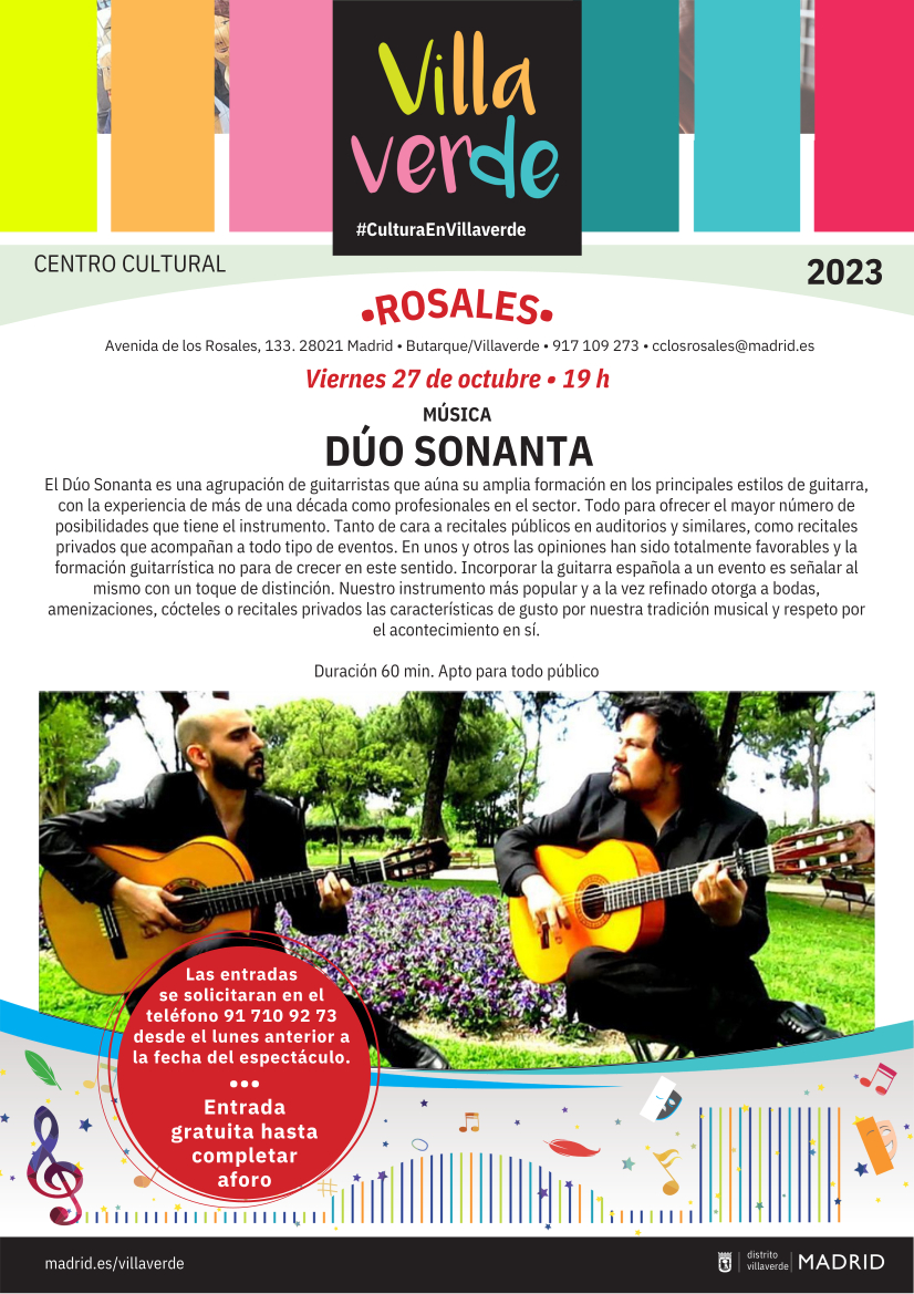 El Dúo Sonanta es una agrupación de guitarristas que aúna su amplia formación en los principales estilos de guitarra, con la experiencia de más de una década como profesionales en el sector. Todo para ofrecer el mayor número de posibilidades que tiene el instrumento. Tanto de cara a recitales públicos en auditorios y similares, como recitales privados que acompañan a todo tipo de eventos. En unos y otros las opiniones han sido favorables, y la formación guitarristica no para de crecer en este sentido. Incorporar la guitarra española a un evento es señalar al mismo con un toque de distinción. Nuestro instrumento más popular y a la vez refinado otorga a bodas, amenizaciones, cócteles o recitales privados las características de gusto por nuestra tradición musical y respeto por el acontecimiento en sí.