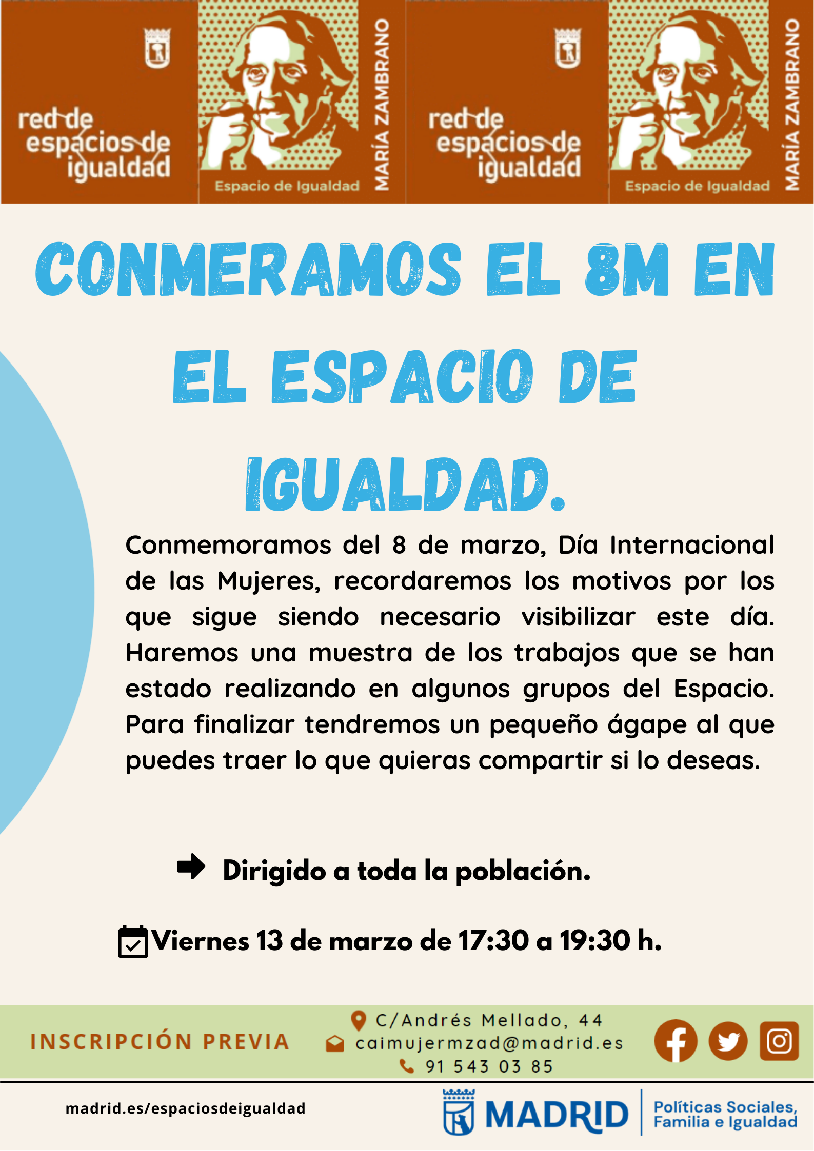 Conmemoramos el 8M en el Espacio de Igualdad María ZambranoViernes 13 de marzo de 2026 a las 17:30 horas