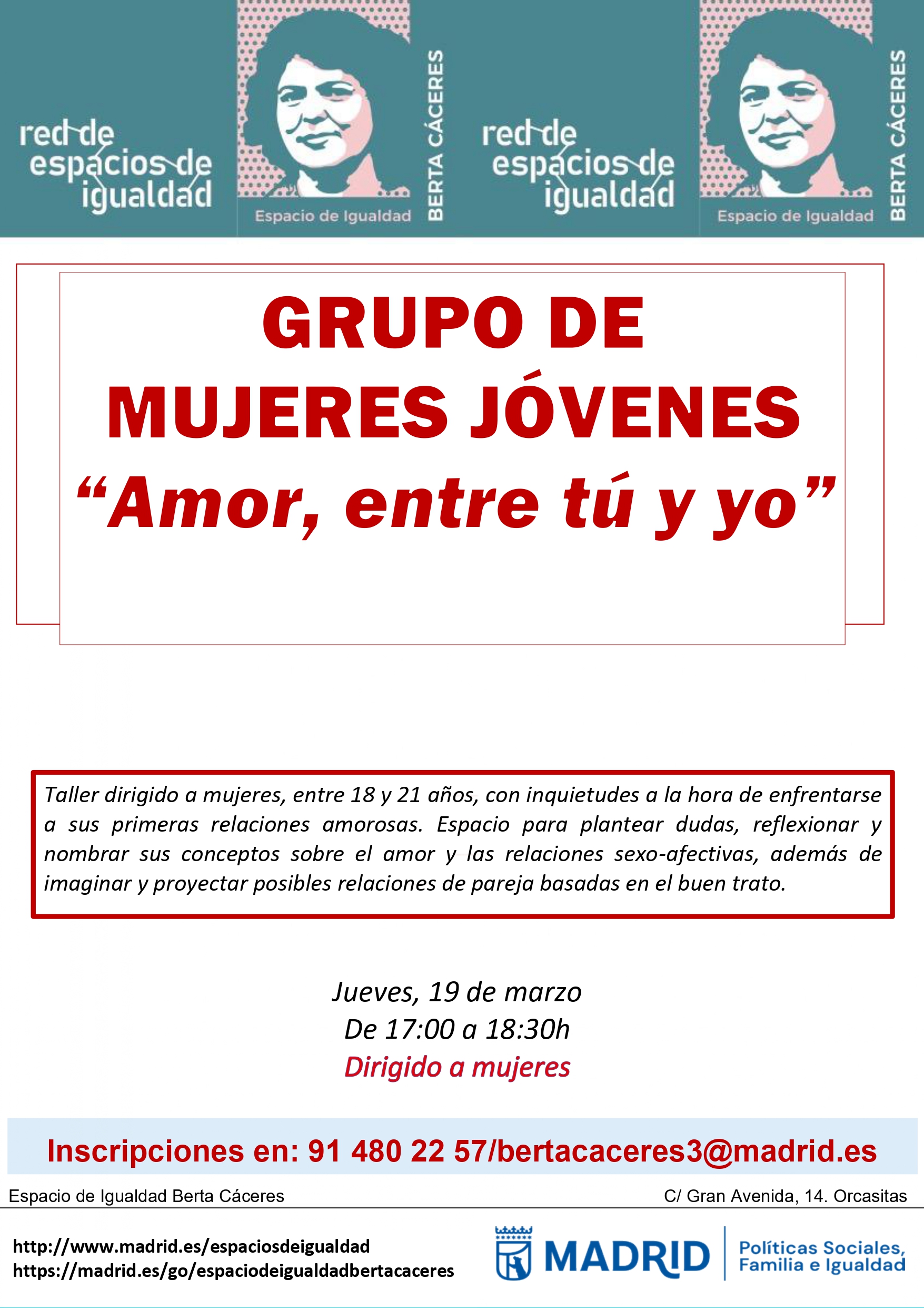 Amor, entre tú y yo. Grupo de mujeres jóvenesJueves 19 de marzo de 2026 a las 17:00 horas