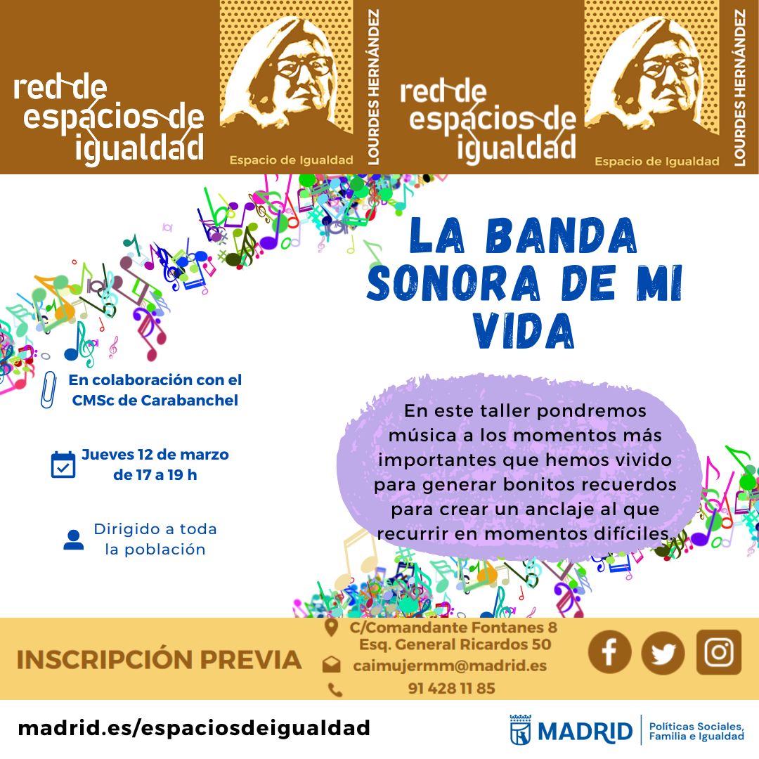 La banda sonora de mi vida. En colaboración con CMSc CarabanchelJueves 12 de marzo de 2026 a las 17:00 horas