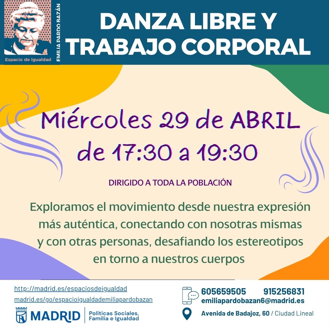 Danza libre y trabajo corporalMiércoles 29 de abril de 2026 a las 17:30 horas