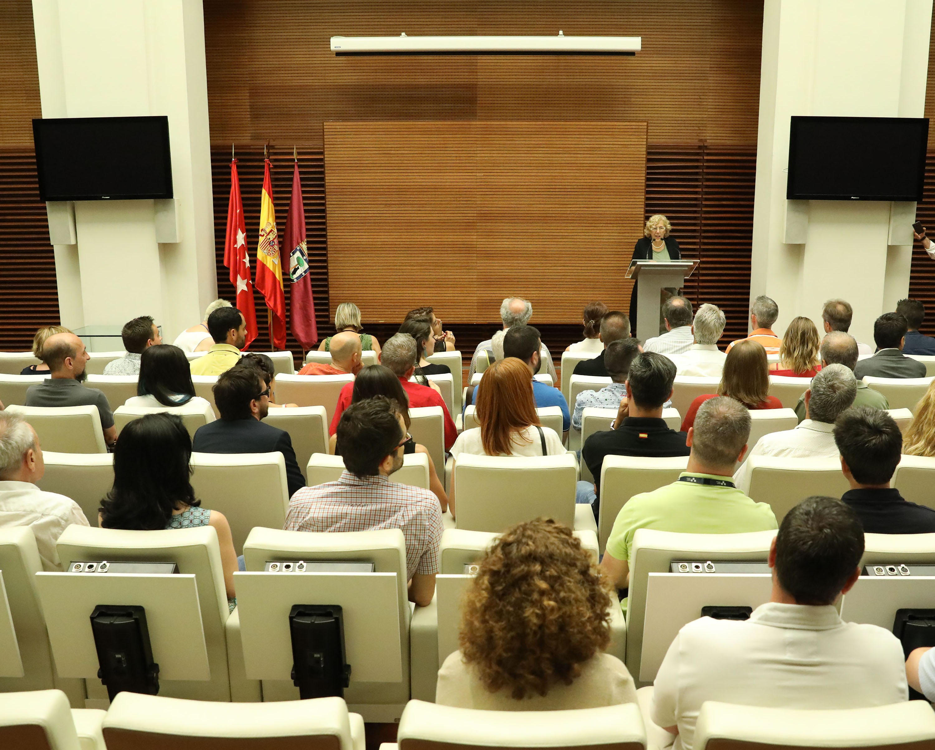 “Todos vosotros habéis hecho posible un hito en la historia de Madrid”. La alcaldesa Manuela Carmena, ha concluido así su intervención ante unas 50 personas que han formado parte del comité organizador de los actos del Orgullo Mundial recientemente celebrado en Madrid entre el 23 de junio y el 2 de julio pasados. Carmena se ha reunido hoy en el palacio de Cibeles con representantes de la Asociación de Empresas y Profesionales para LGTB de la Comunidad de Madrid (AEGAL), la COGAM y FELGTB así como integrantes del grupo operativo municipal encabezado por el coordinador general de Alcaldía, Luis Cueto.