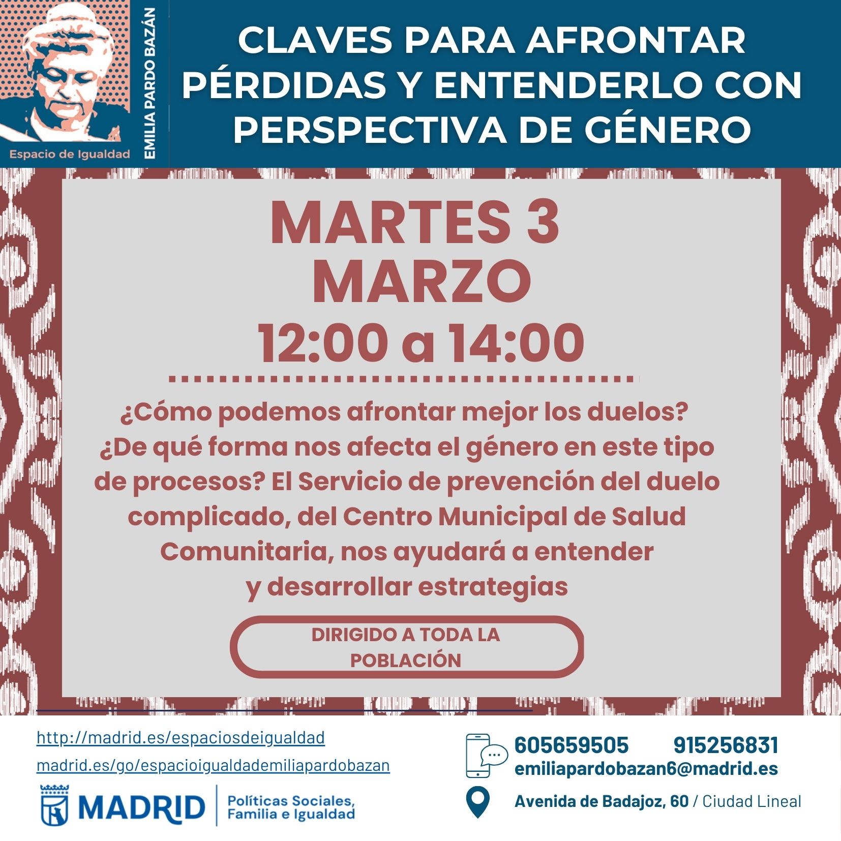 Necesaria inscripción previa en el Espacio de Igualdad Emilia Pardo Bazán o a través de: