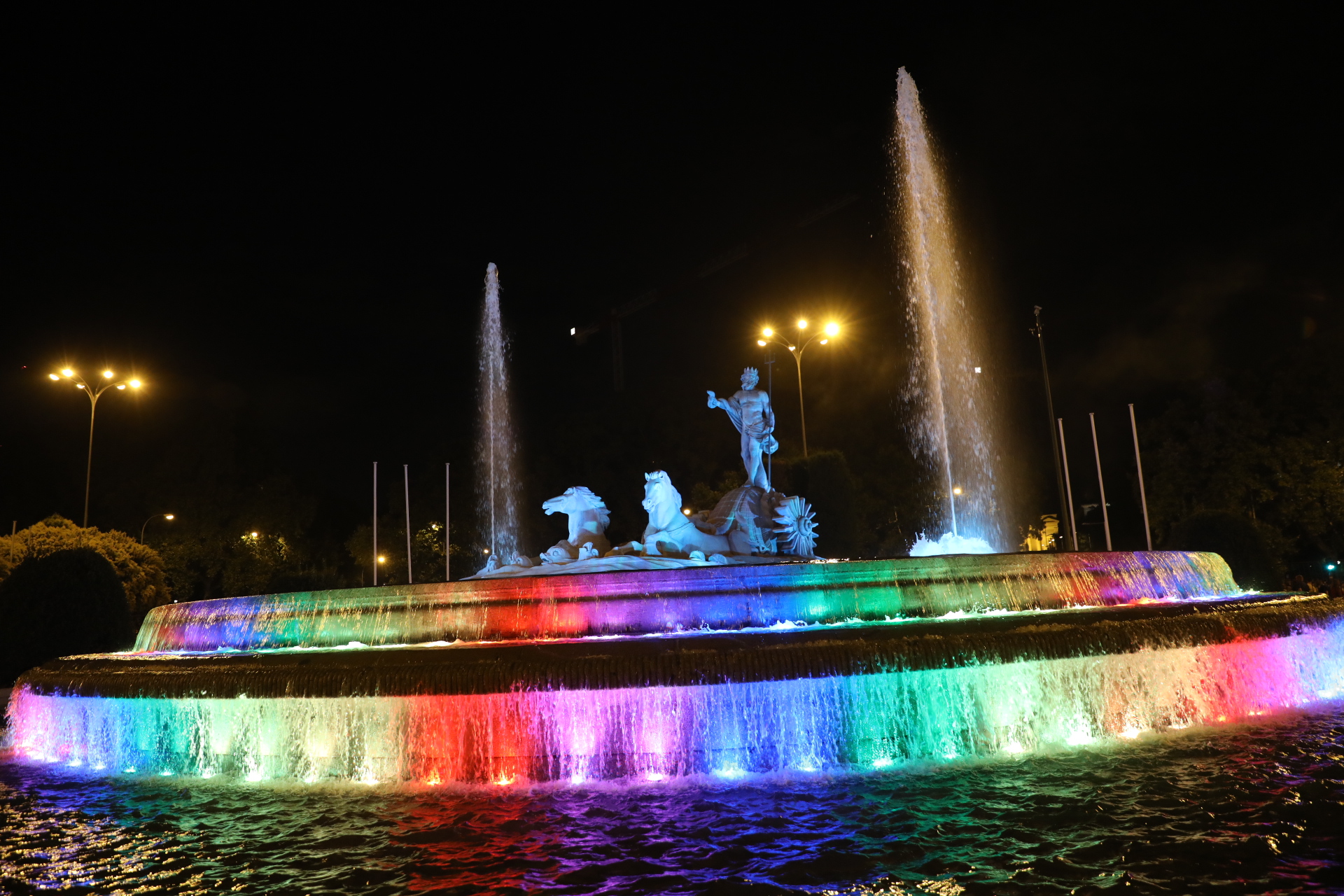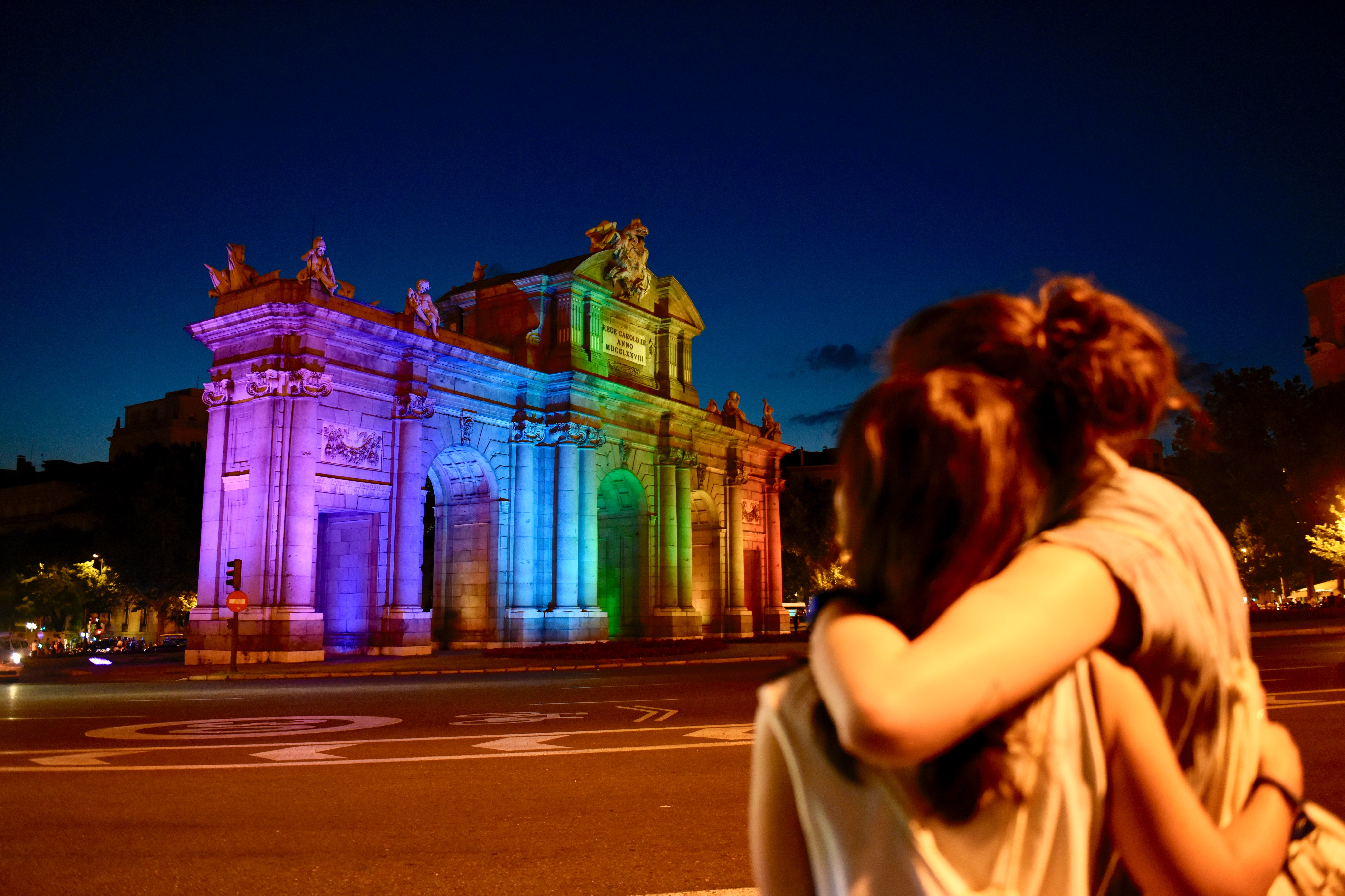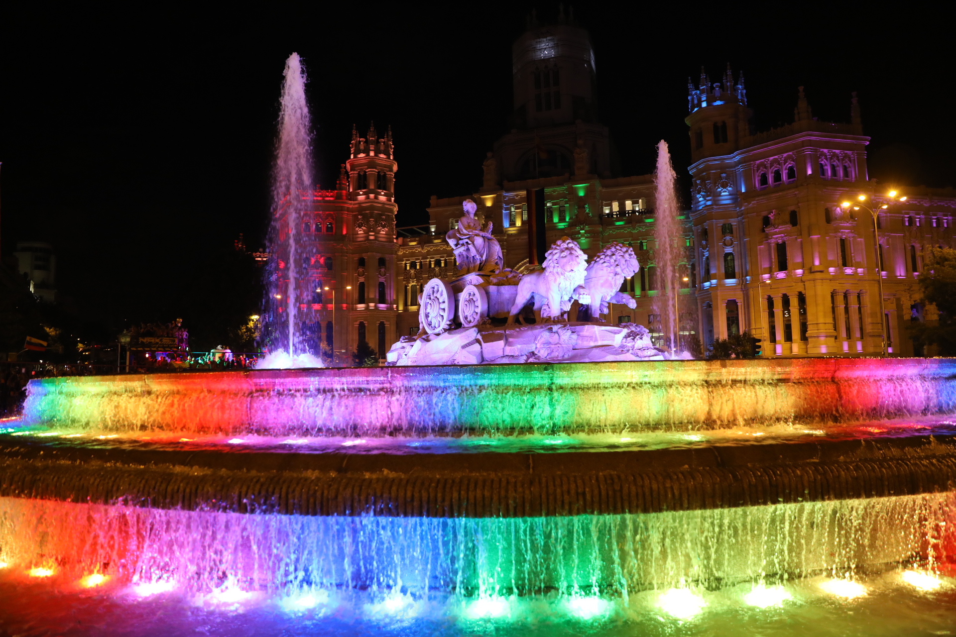 Los edificios más emblemáticos se iluminaron de los colores de la bandera LGTBI para celebrar que un mundo mejor es posible en igualdad: 'Conquistando Igualdad, TRANSformando la sociedad'. /