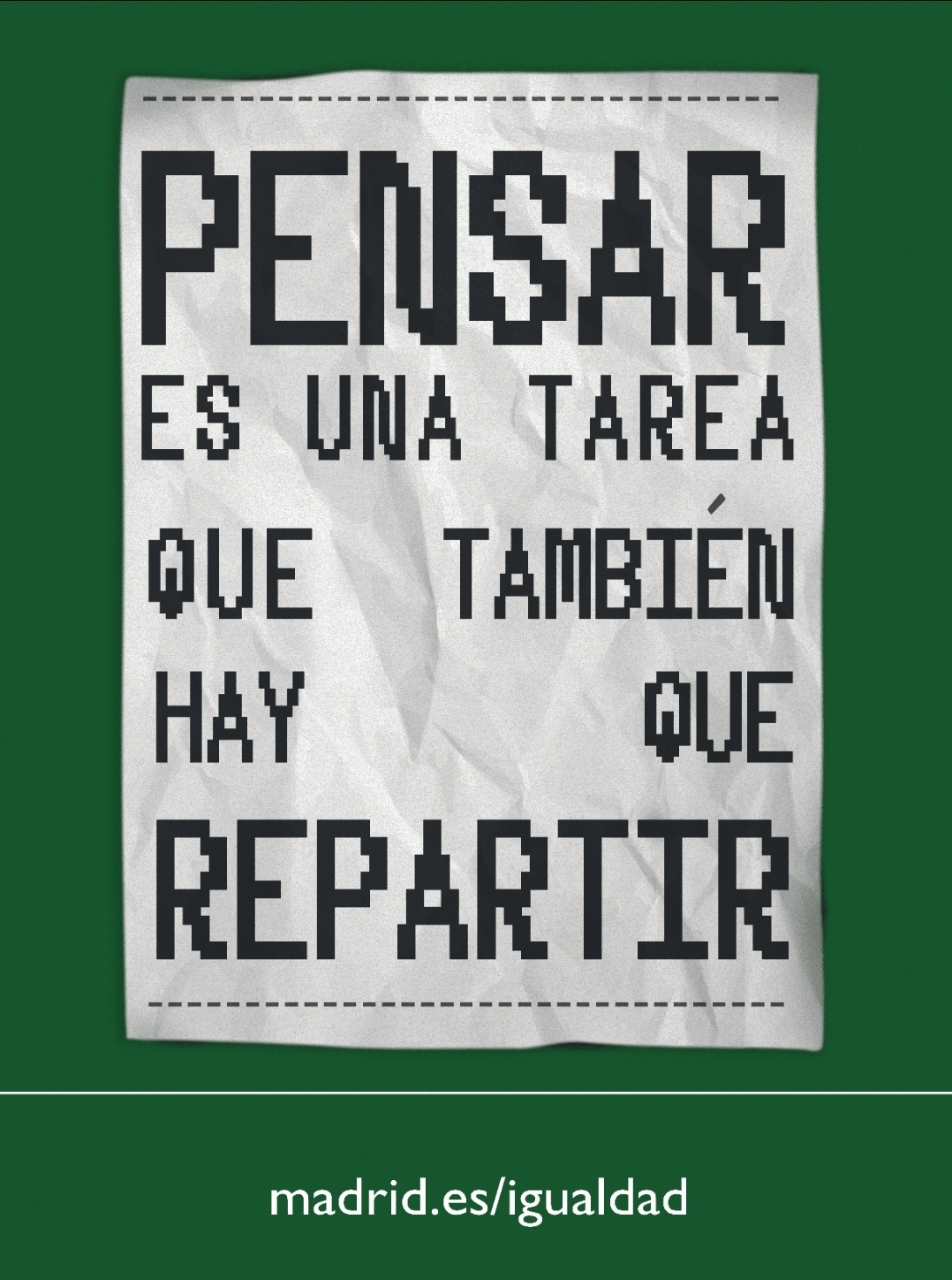 El Ayuntamiento de Madrid lanza en noviembre de 2025 una acción de concienciación a favor de la corresponsabilidad en el hogar que insta a los hombres a asumir los cuidados y las tareas domésticas. Con el texto "Pensar es una tarea que también hay que repartir" se trata de visibilizar la carga mental asumida por las mujeres, tratando de fomentar un cambio cultural hacia una distribución equitativa de estas responsabilidades.