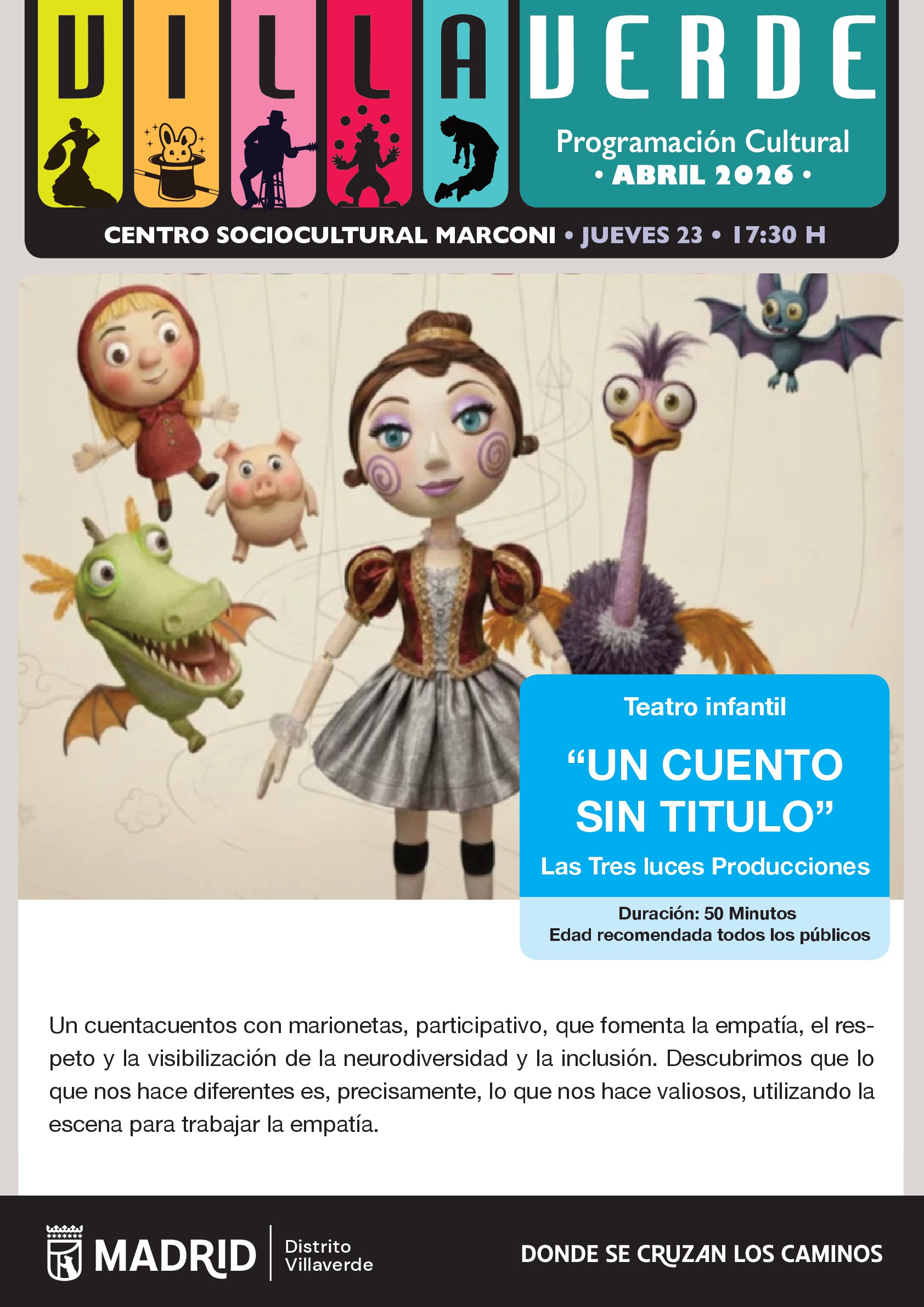 Sinopsis: Un cuentacuentos con marionetas, participativo, que fomenta la empatía, el respeto y la visibilización de la neurodiversidad y la inclusión. Descubrimos que lo que nos hace diferentes es, precisamente, lo que nos hace valiosos, utilizando la escena para trabajar la empatía.
