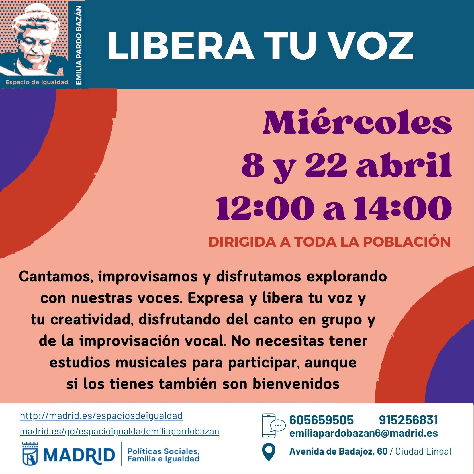 Libera tu voz. Círculo de cantoDel miércoles 8 de abril de 2026 al miércoles 22 de abril de 2026
