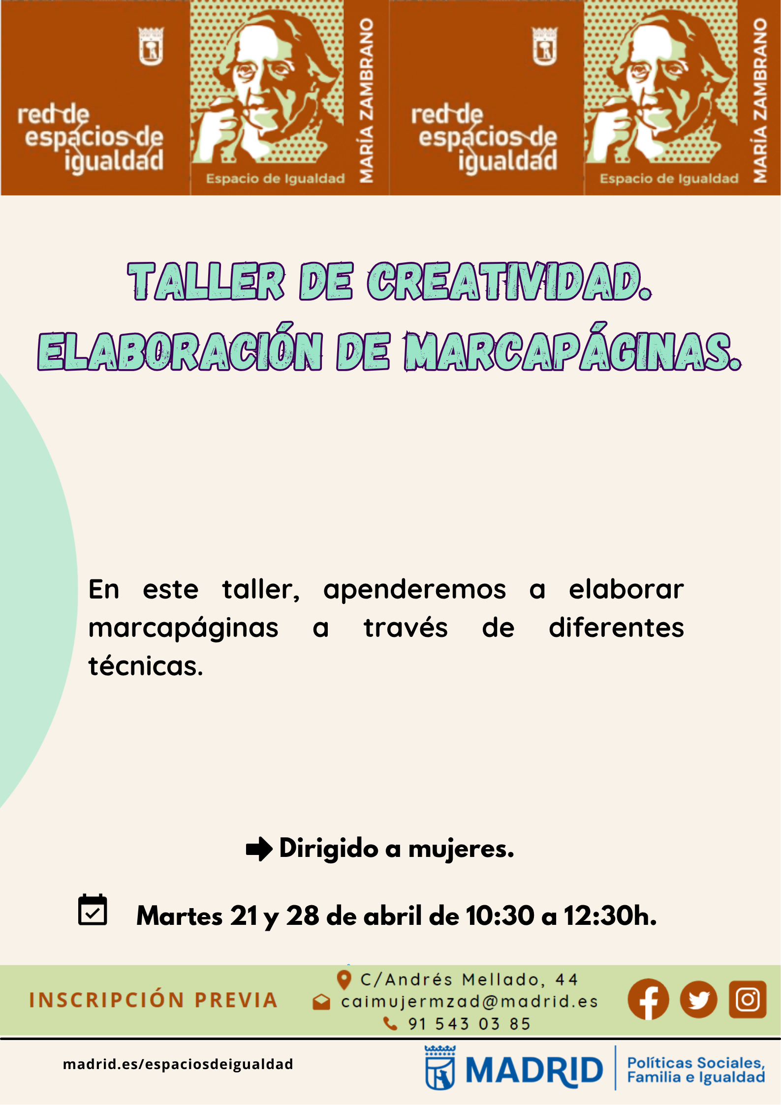 Creatividad. Elaboración de marcapáginas [Mujeres Compartiendo Sabiduría]Del martes 21 de abril de 2026 al martes 28 de abril de 2026