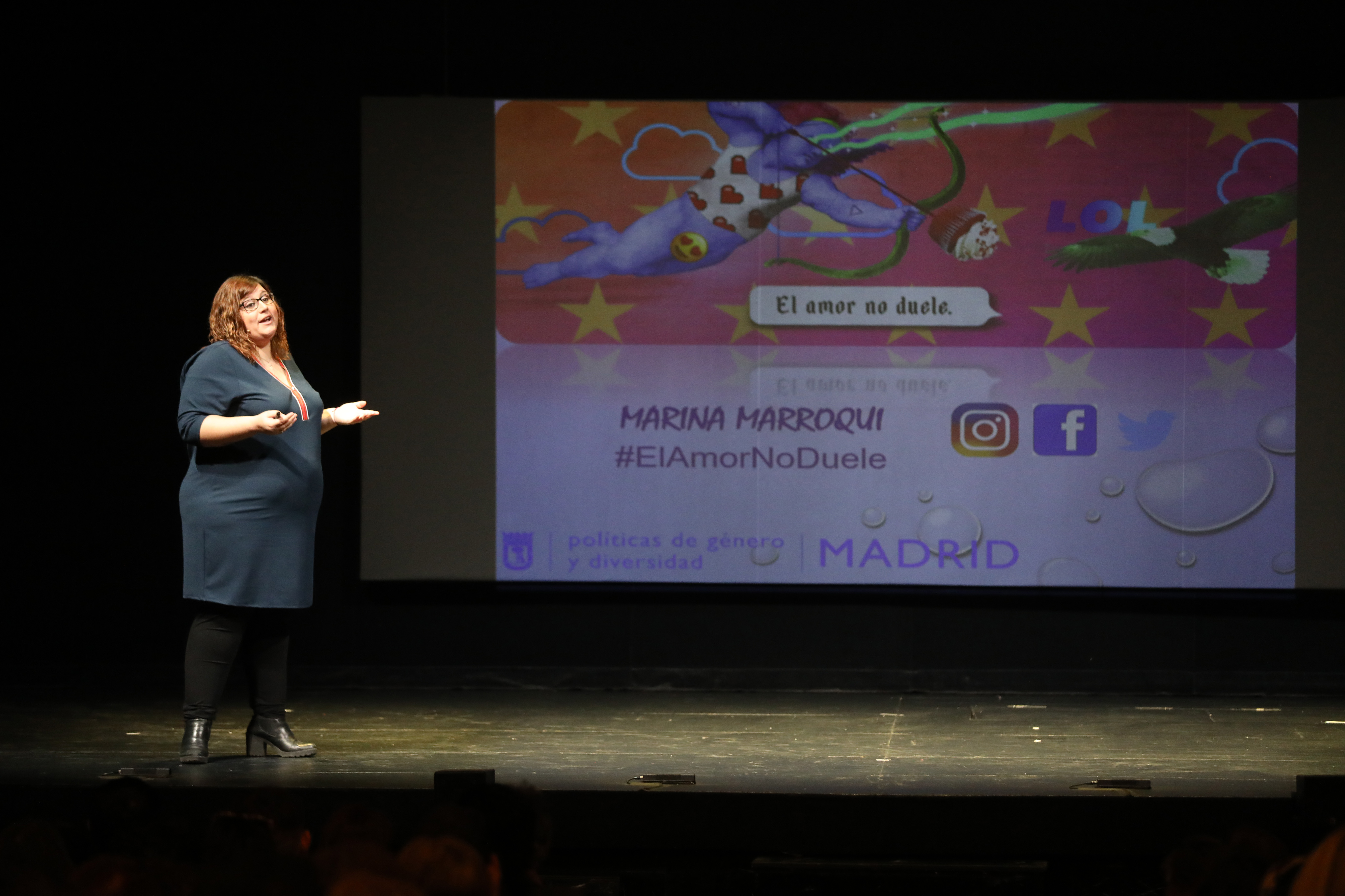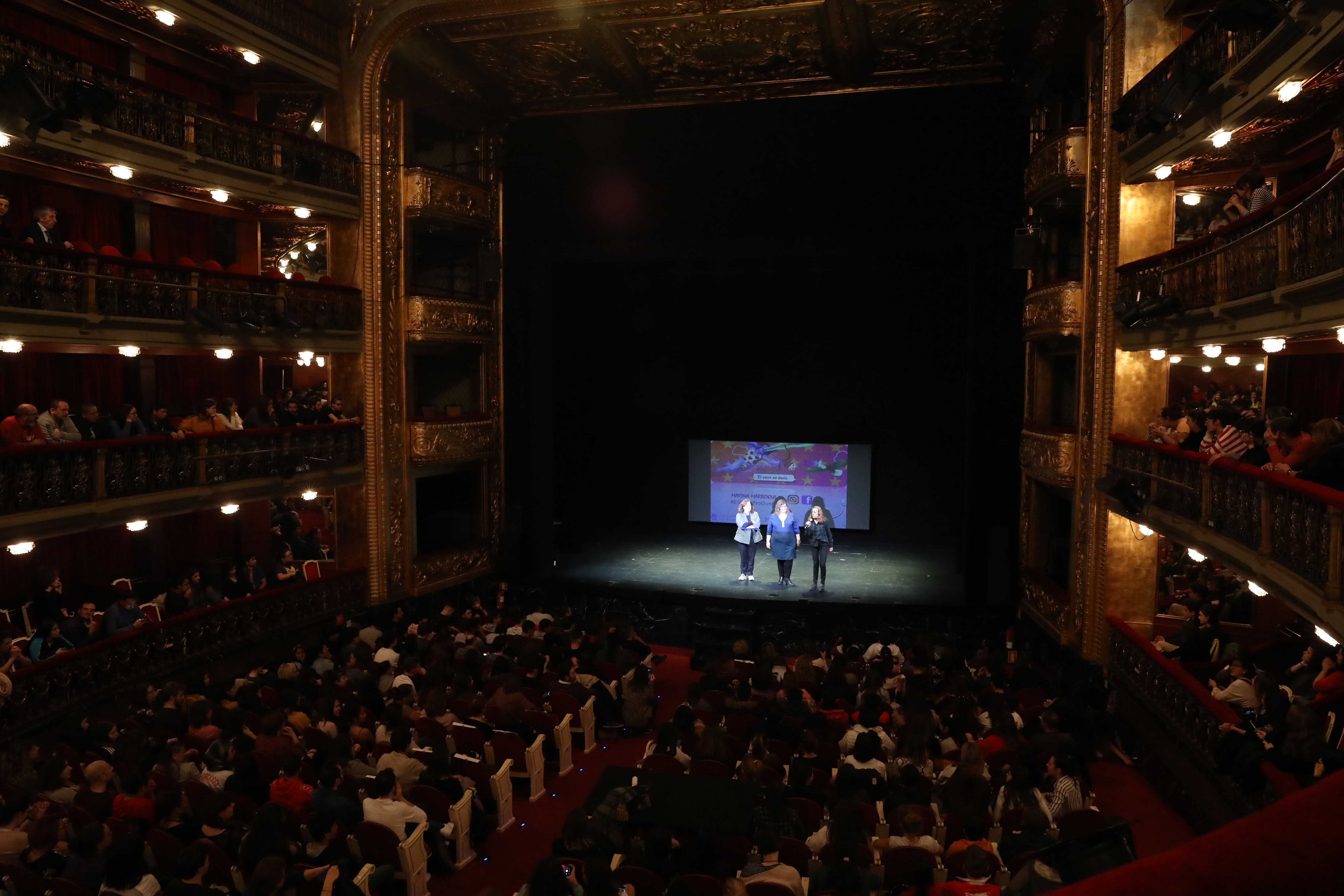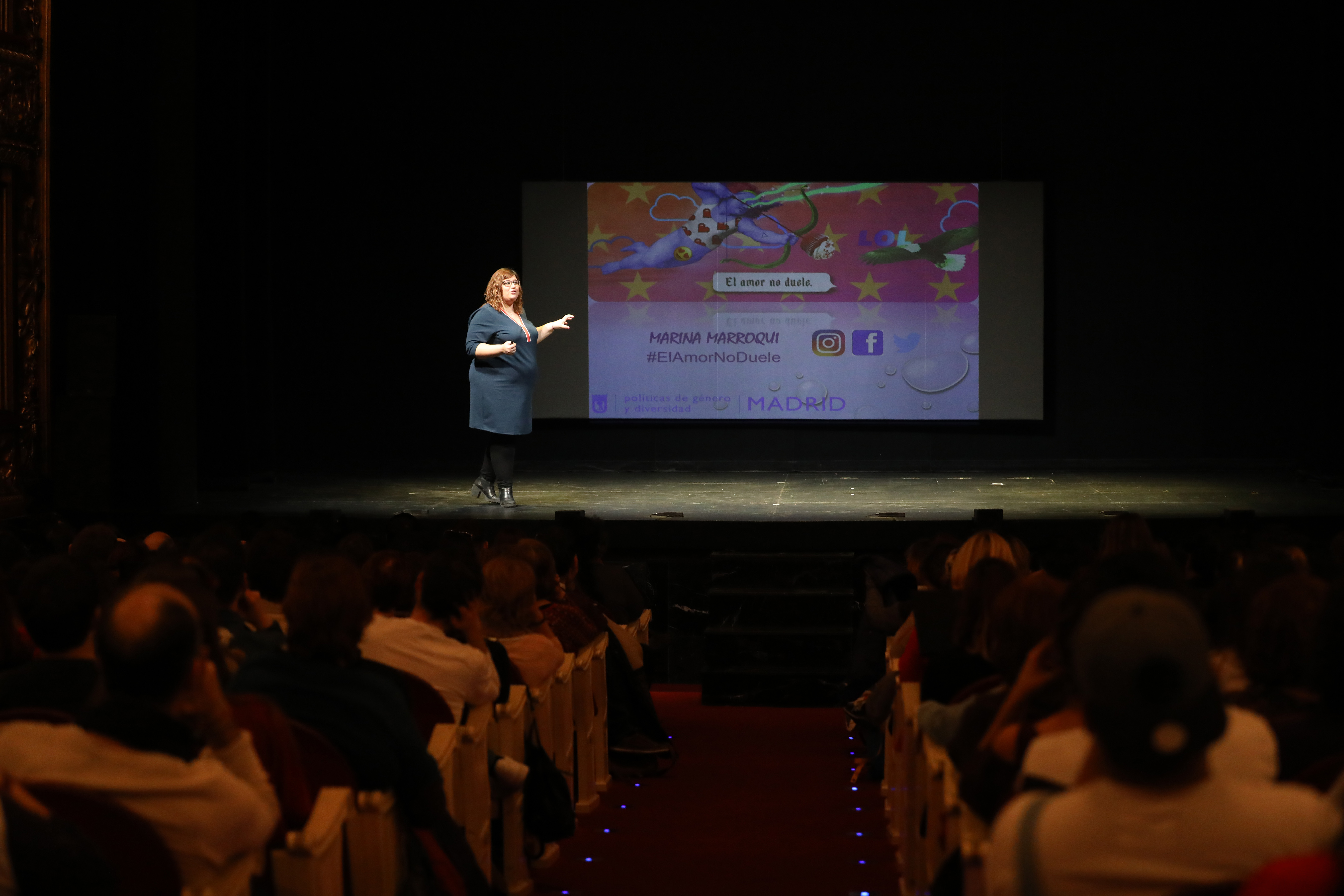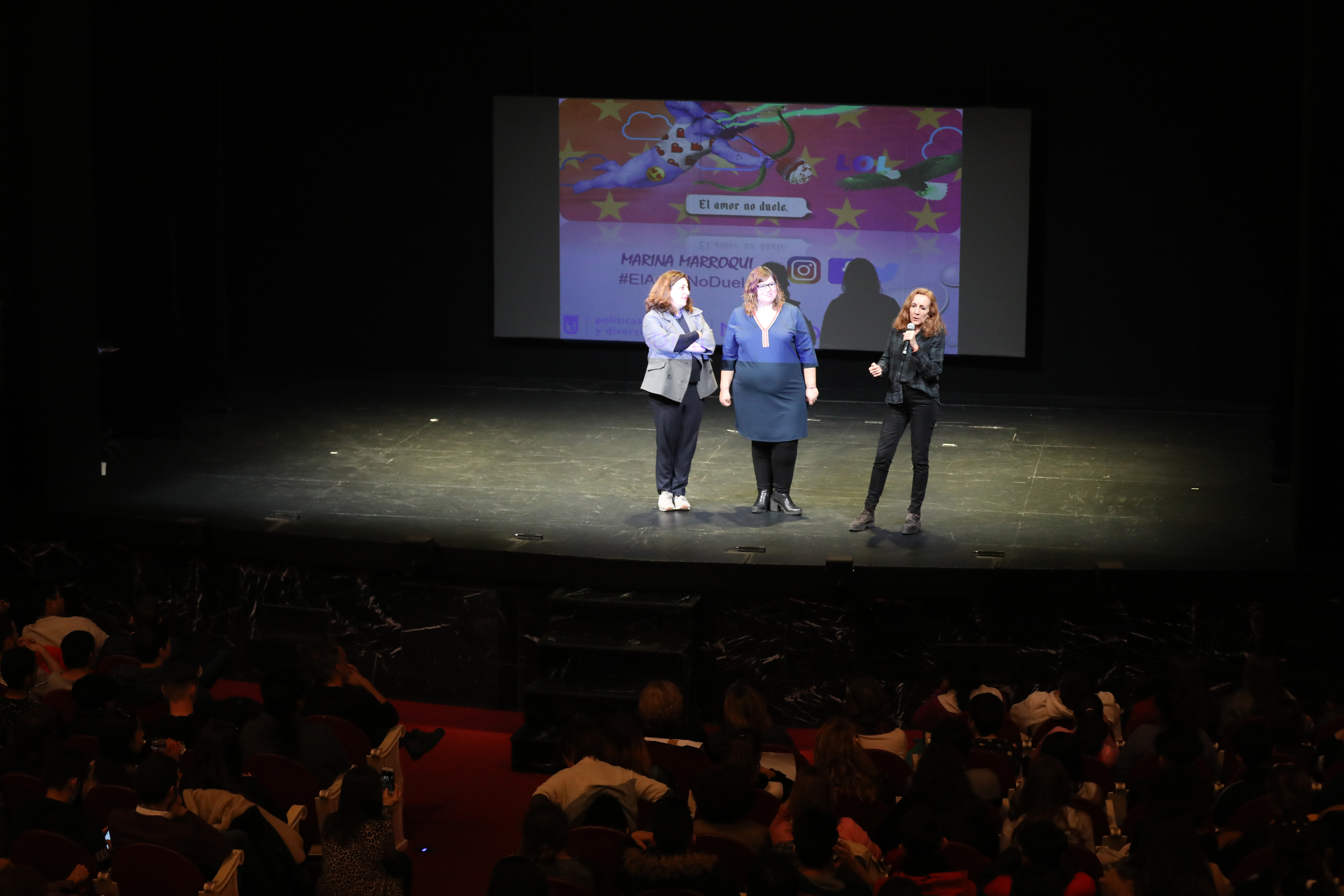 El Teatro Español ha abierto esta tarde sus puertas a casi 740 adolescentes que han acudido a escuchar el monólogo ‘Eso no es amor’, de Marina Marroquí. Durante dos horas, Marroquí les ha narrado en clave de humor conductas que son propias de la violencia machista. Y les ha advertido que el amor tóxico es maltrato.