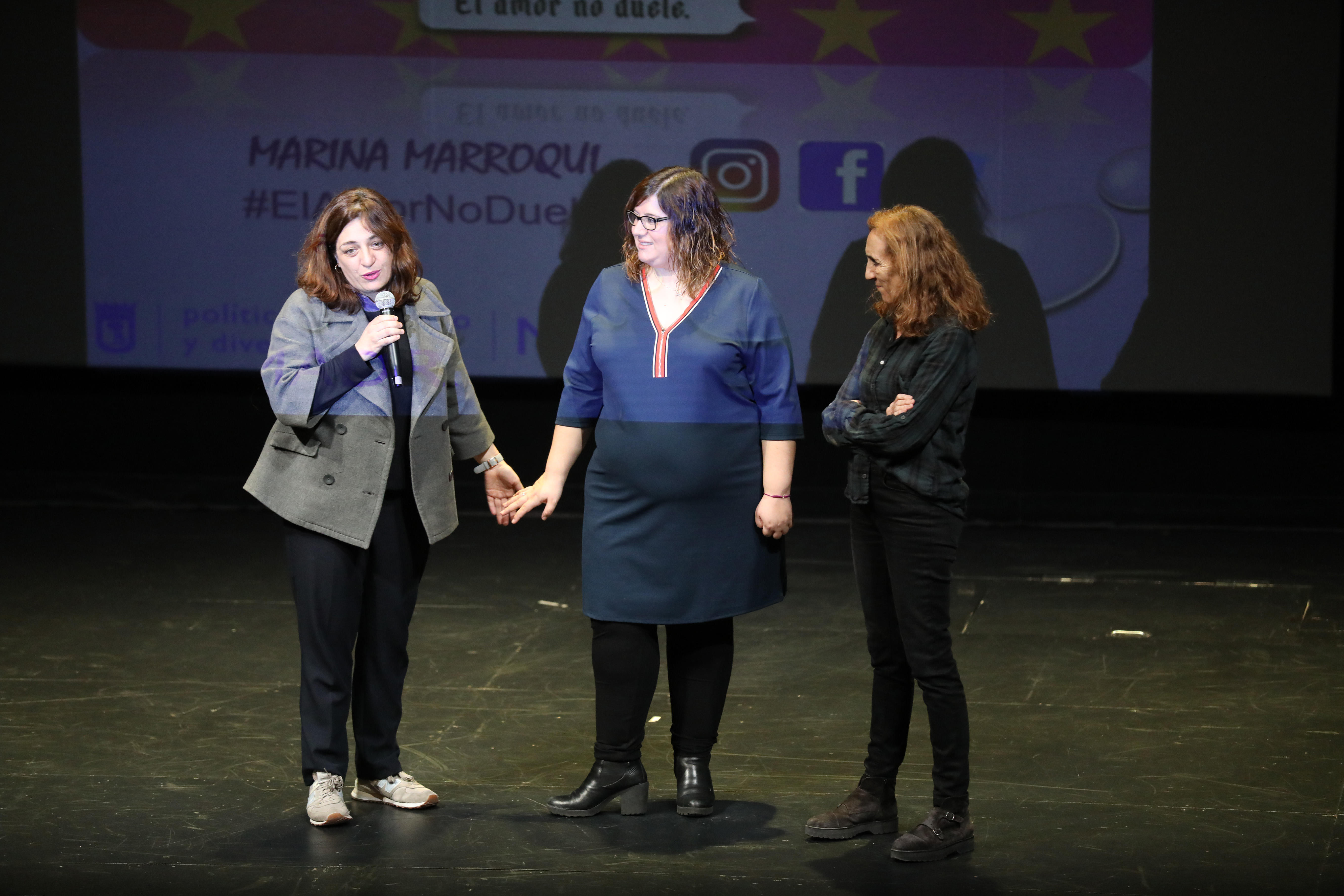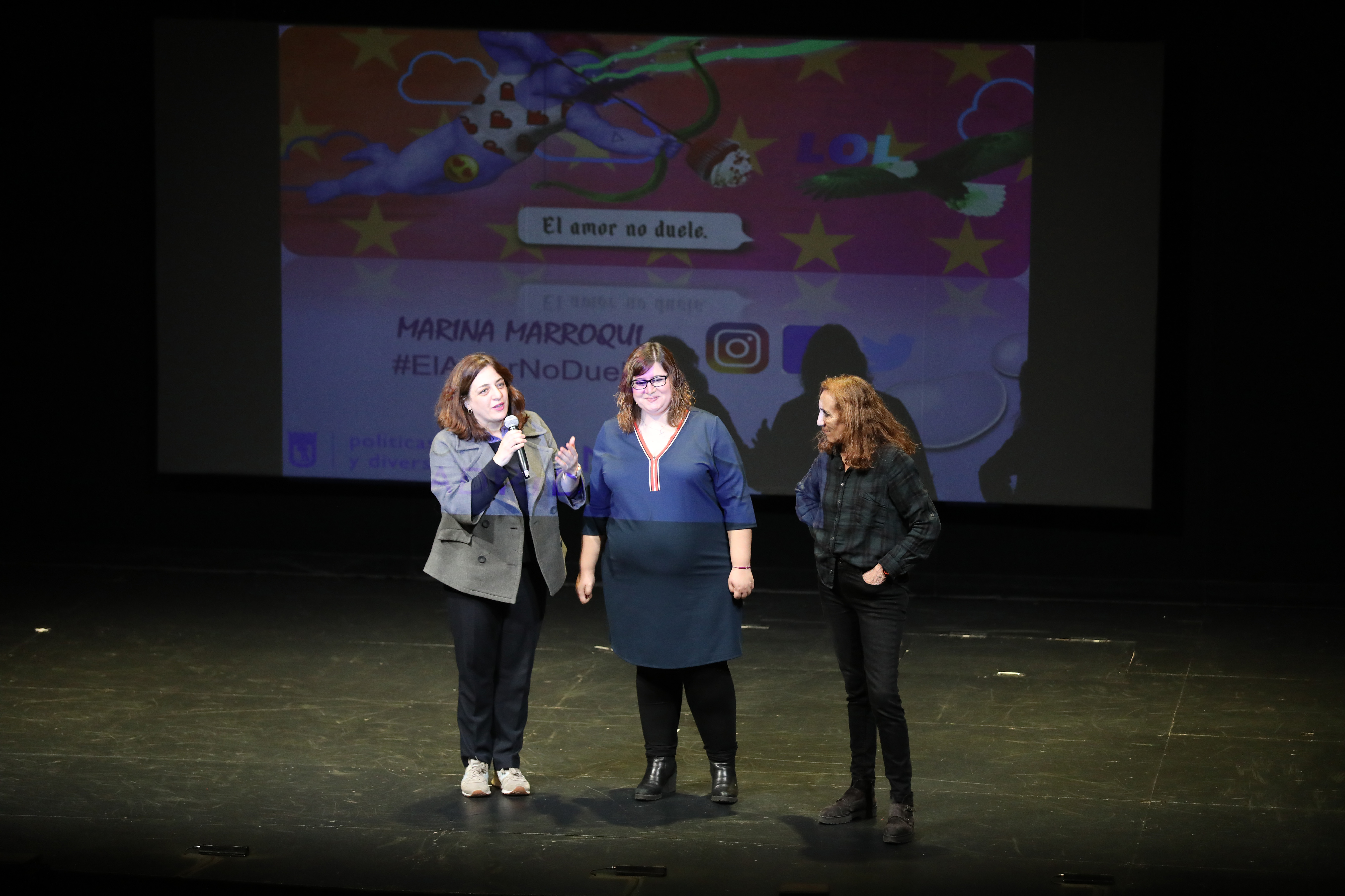 La delegada del Área de Políticas de Género y Diversidad, Celia Mayer, y la directora del Teatro Español, Carme Portaceli, han estado presentes en este evento que forma parte de la campaña municipal ‘El amor no duele’, con motivo del día de San Valentín, que se celebra hoy jueves 14 de febrero.