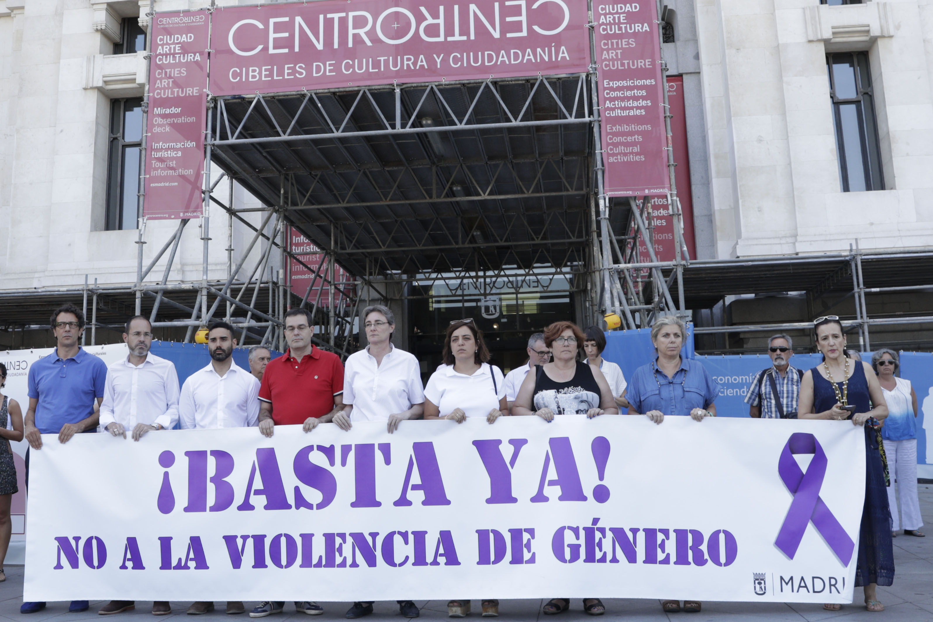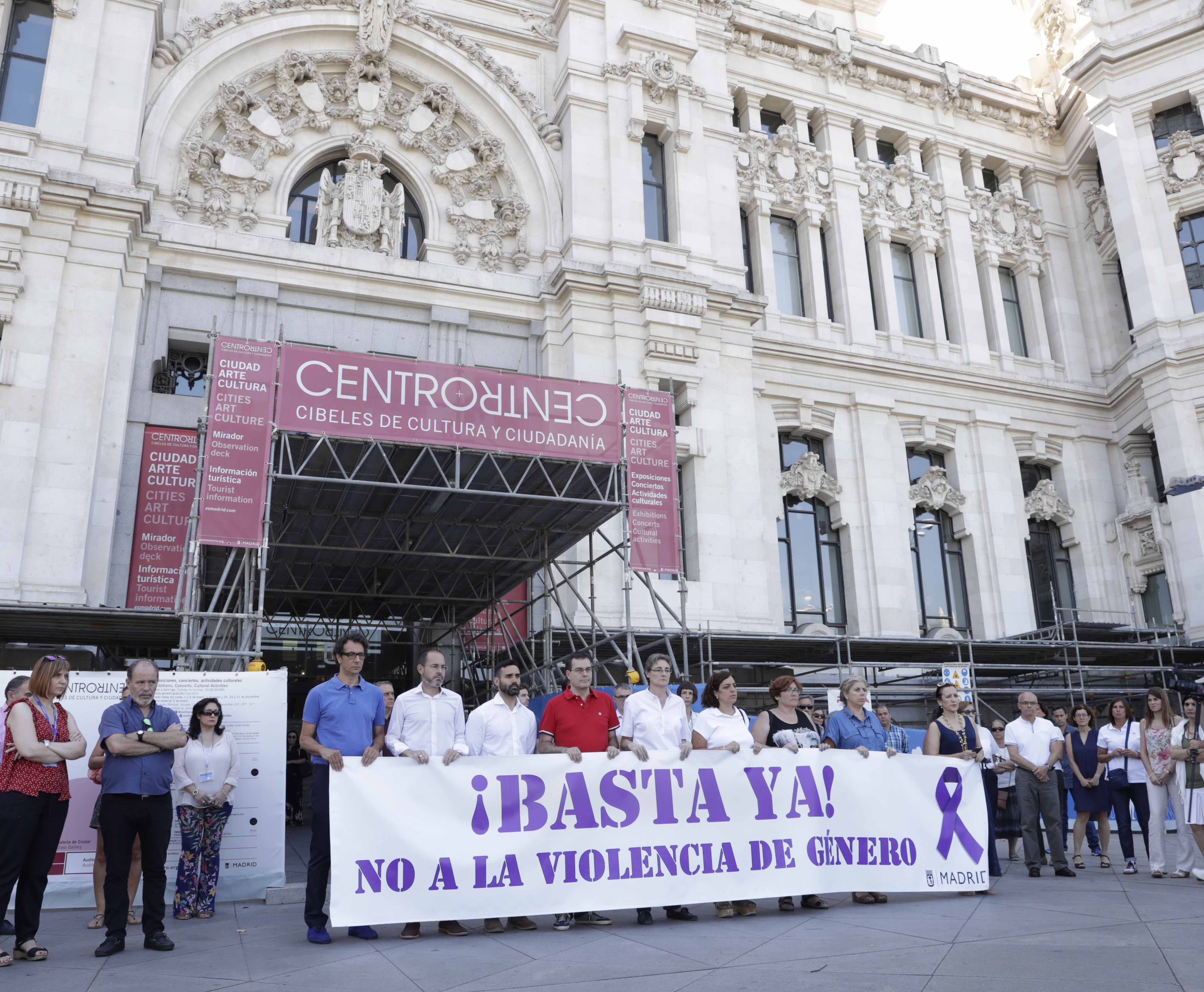 La alcaldesa de Madrid en funciones y delegada del área de Equidad, Derechos Sociales y Empleo, Marta Higueras, junto a varios miembros de la corporación y trabajadores y trabajadoras municipales, han guardado a mediodía de hoy (jueves, 3 de agosto) un minuto de silencio ante el Palacio de Cibeles como muestra de repulsa y condena por la muerte de María Raquel, una mujer de 63 años asesinada el lunes 31 de julio en la localidad madrileña de Getafe.