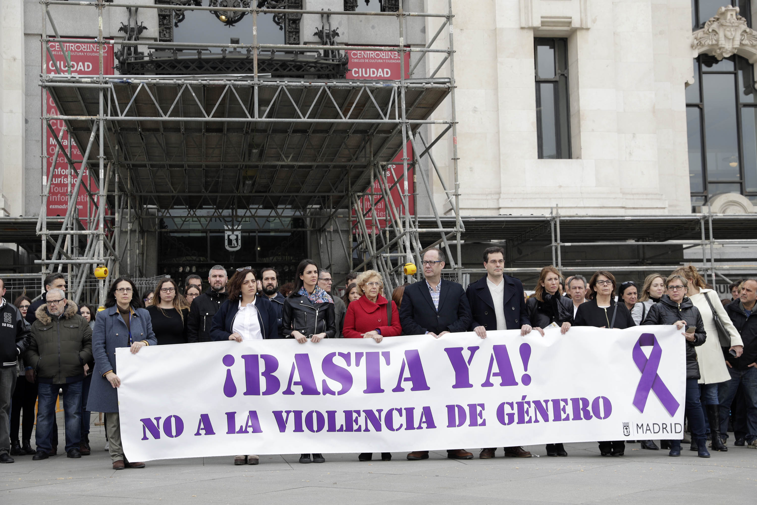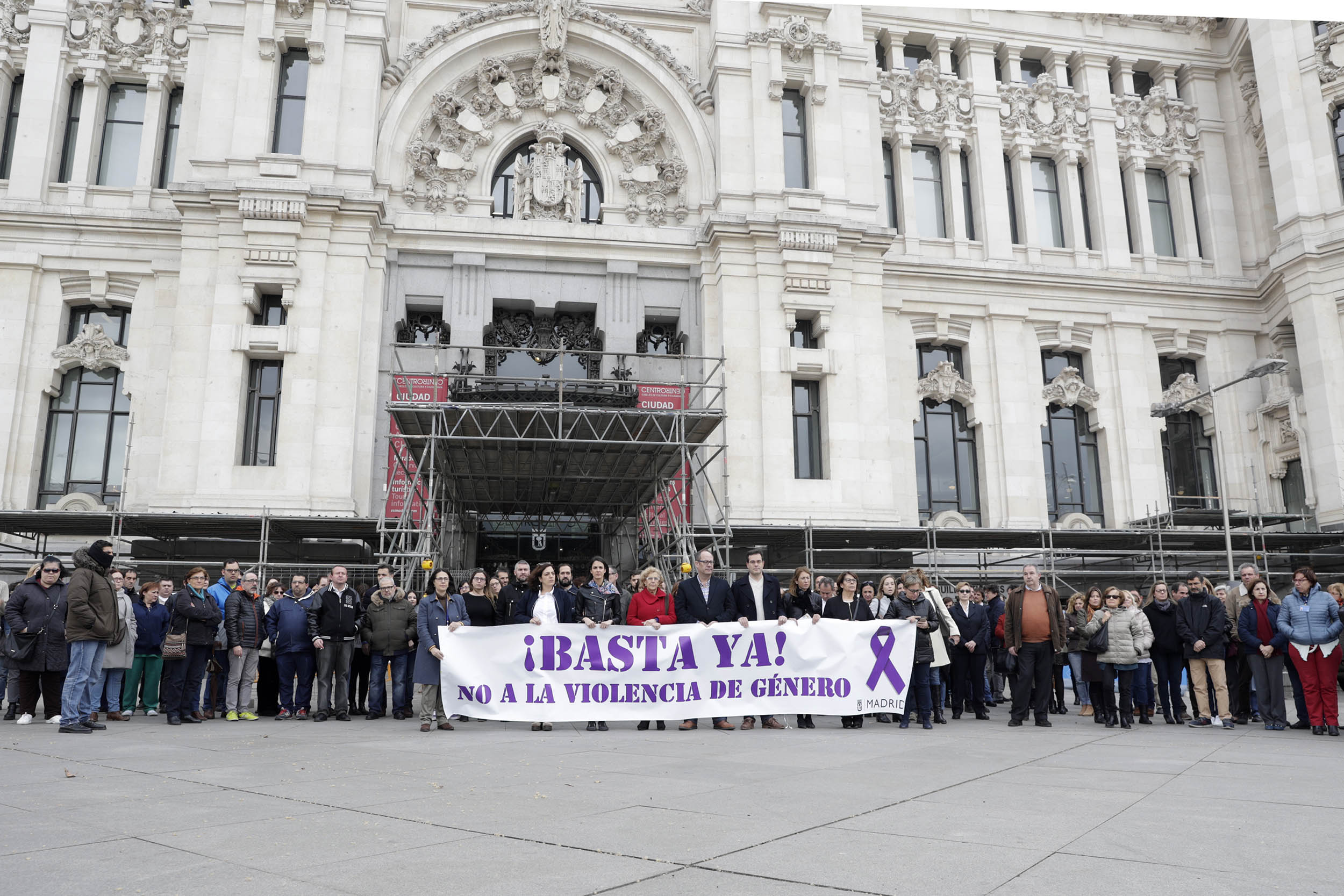 La alcaldesa de Madrid, Manuela Carmena, junto a miembros de la corporación y trabajadores y trabajadoras municipales, ha guardado a mediodía de hoy, viernes 3 de marzo, un minuto de silencio ante el Palacio de Cibeles como muestra de repulsa y condena por la muerte de una mujer, víctima de la violencia de género, asesinada el pasado 1 de marzo en el distrito de Vicálvaro. Además, al tratarse de una vecina de la ciudad de Madrid, el Ayuntamiento ha decretado tres días de luto oficial.