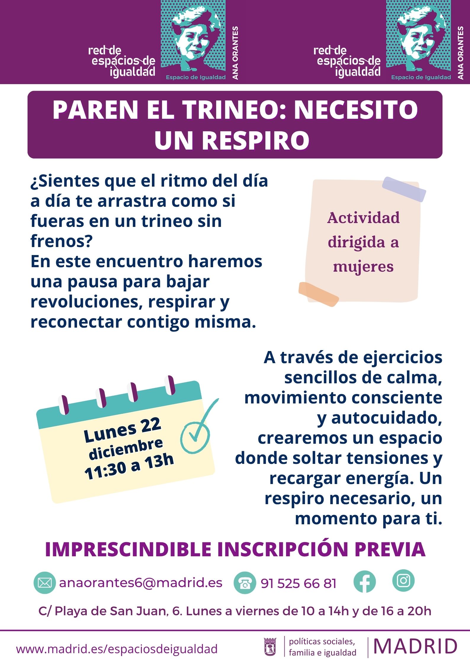 Bienestar emocional. Espacio de Igualdad Dulce ChacónDel jueves 4 de diciembre de 2025 al jueves 18 de diciembre de 2025