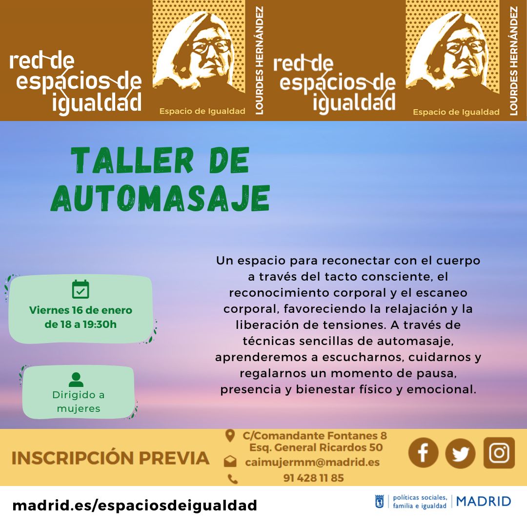 Taller de automasaje. Espacio de Igualdad Lourdes HernándezViernes 16 de enero de 2026 a las 18:00 horas