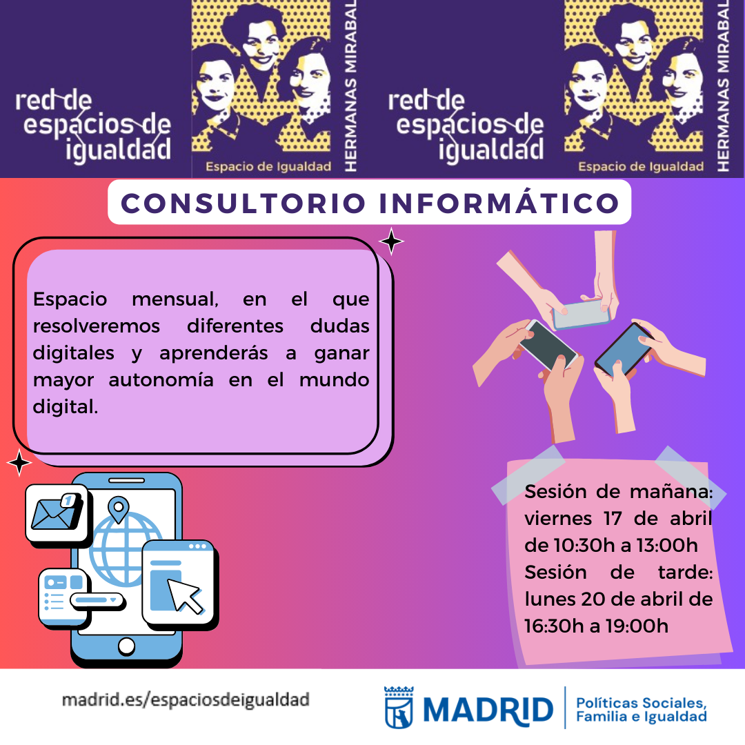 Consultorio informático en el Espacio de Igualdad Hermanas MirabalDel viernes 17 de abril de 2026 al lunes 20 de abril de 2026