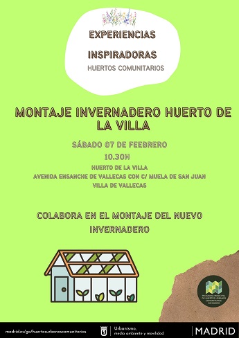 Taller Montaje Invernadero en el Huerto de la Villa: sábado 07 de febrero a las 10:30 h