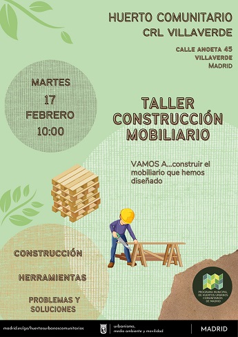 Taller de Construcción de Mobiliario en el Huerto CRL Villaverde: martes 17 de febrero a las 10:00 h