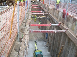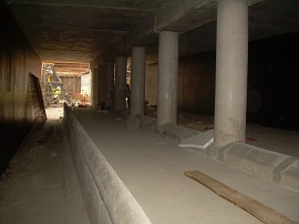 Interior del estanque de tormentas Colector a cielo abierto en zanja entibada
