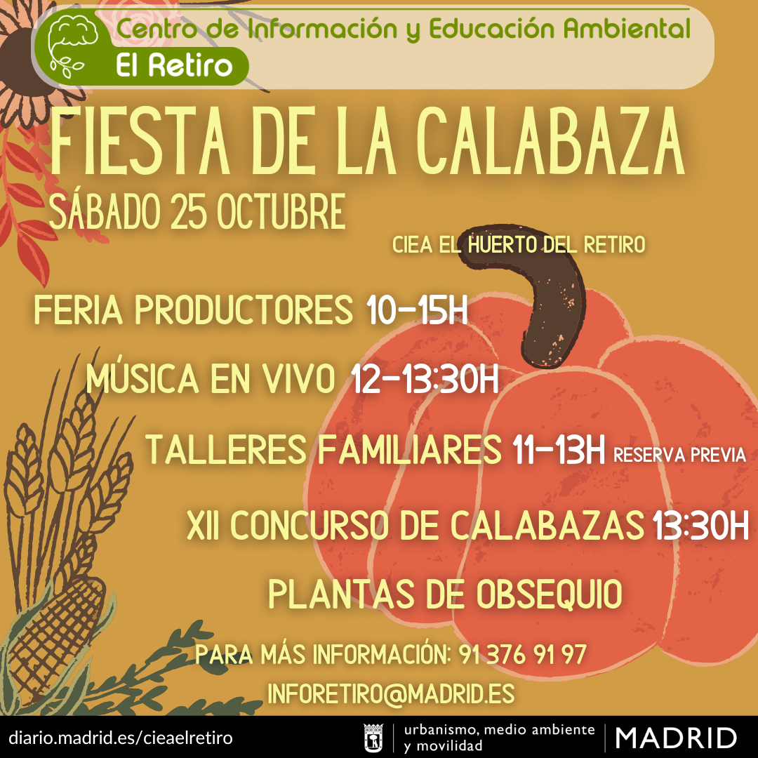 El pasado 25 de octubre el Centro de Información y Educación Ambiental de El Huerto de El Retiro ha vuelto a organizar su ya tradicional Fiesta de la Calabaza.