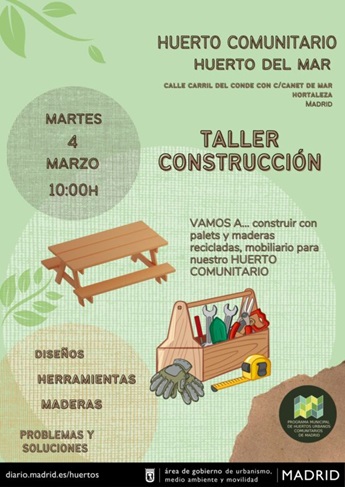 De variada temática, estas actividades pretenden cubrir todo aquello que se considera de utilidad para el buen mantenimiento de un huerto urbano: plagas, riego, vermicompostaje, injertos, puesta a punto, construcción de mobiliario, semilleros, suelos, agronomía, bancales; e incluso oasis de mariposas, líneas Hartmann y agroforestería sintrópica; así como servir de punto de encuentro donde aprender y compartir vivencias e interconectar a los habitantes de nuestro municipio.