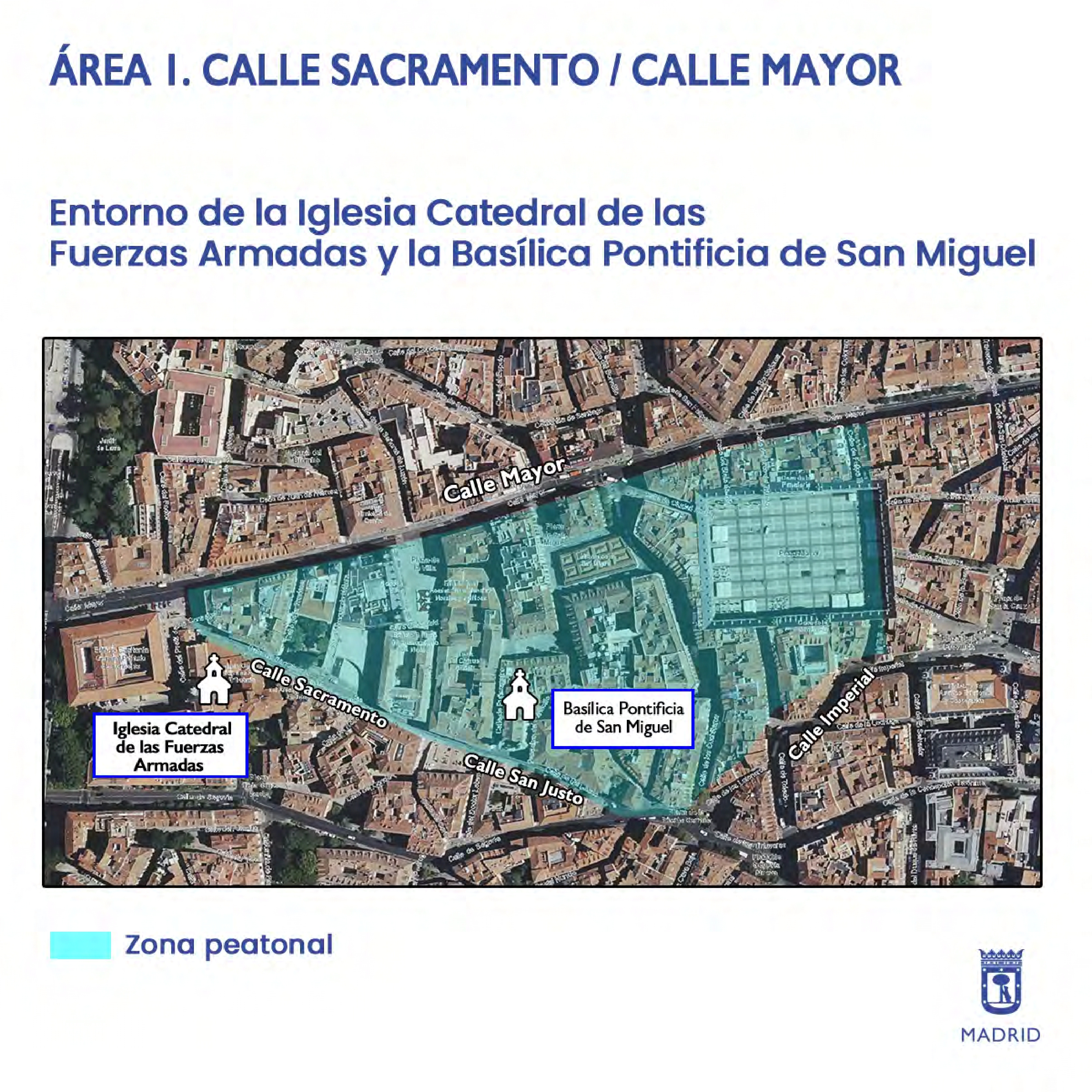 La medida tiene como objetivo facilitar a los viandantes un tránsito cómodo en el entorno de los templos más visitados: la Iglesia Catedral de las Fuerzas Armadas (Iglesia del Sacramento), la Basílica Pontificia de San Miguel, la Real Iglesia de San Andrés Apóstol, la Iglesia de San Pedro el Viejo, la Colegiata de San Isidro, la Iglesia de San Ildefonso, la del Santísimo Cristo de la Fe, la Basílica de Jesús de Medinaceli y la Capilla del Divino Cautivo de los Padres Escolapios.