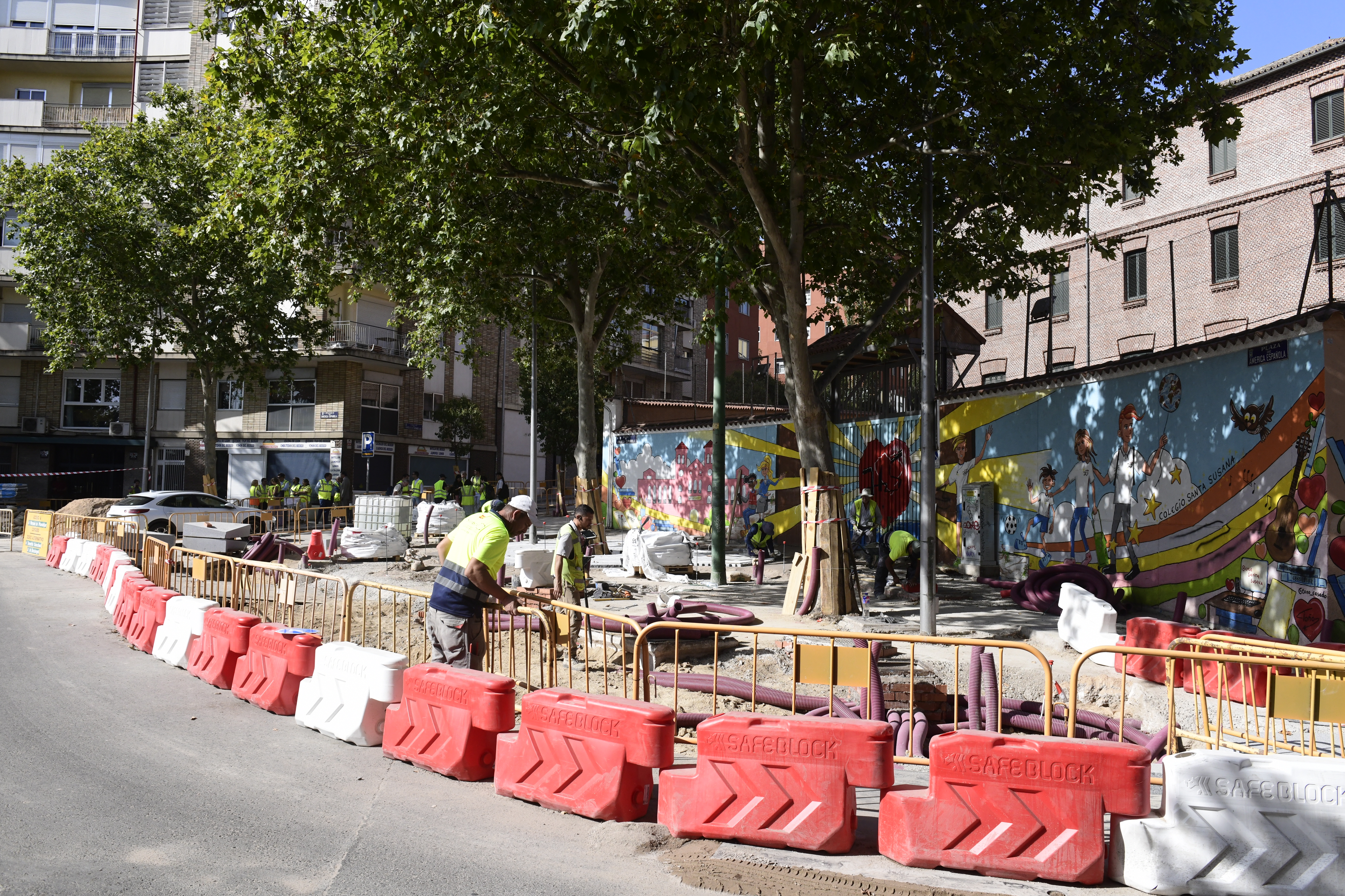 La calle de Alejandro González se reordenará para facilitar el tránsito peatonal y reforzar la conexión entre la calle de Alcalá y el nuevo parque. En la plaza de América Española, el Ayuntamiento peatonalizará la parte este del anillo de circulación, respetará el arbolado existente e incorporará nuevos ejemplares. También creará dos áreas estanciales separadas del tráfico mediante jardineras, con juegos tradicionales integrados en el pavimento, pensadas como zonas de espera para las familias del colegio Santa Susana.