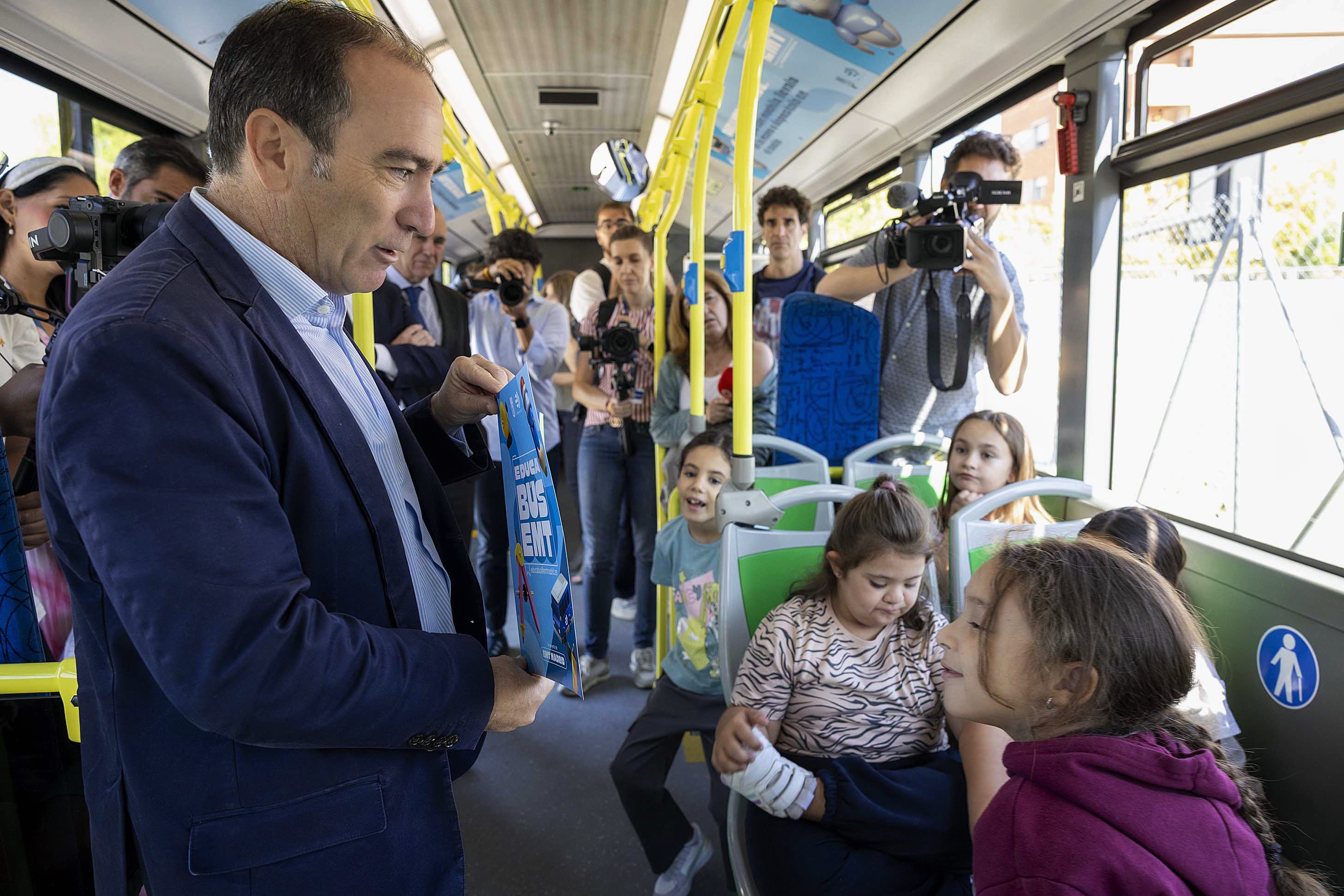 El delegado de Urbanismo, Medio Ambiente y Movilidad, Borja Carabante, ha presentado hoy Educabús, un proyecto de la Empresa Municipal de Transportes de Madrid (EMT Madrid) para enseñar a los más pequeños a elegir el autobús como medio de transporte para moverse por la ciudad. El programa, dirigido a alumnos de primaria de los 21 distritos de la ciudad, se compone de un pilar práctico (uso adecuado del billete, localización de asientos reservados, etc.), y otro orientado a la sensibilización y el impacto que nuestra forma de desplazarnos tiene en el medio ambiente, en la salud y en la vida de las personas.